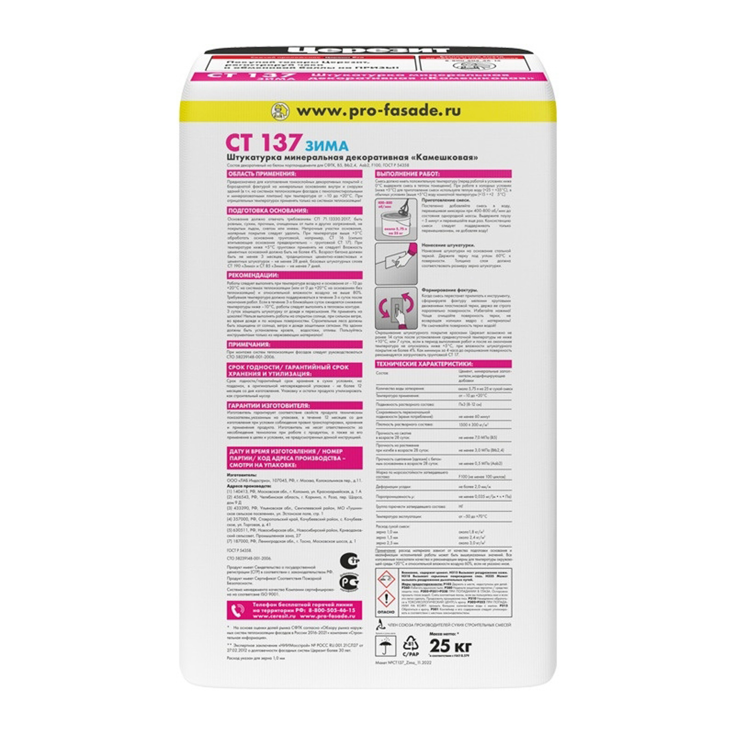 Штукатурка декоративная CT 137 камешковая, фр.1 мм 25кг зима Церезит *1/48