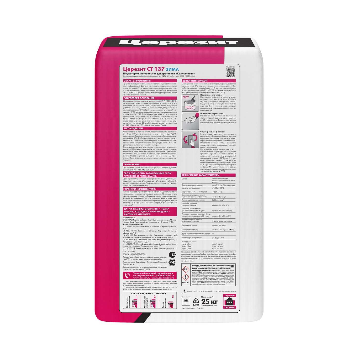 Декоративная штукатурка CT 137 предназначена для изготовления тонкослойных декоративных покрытий с зернистой фактурой на бетоне, цементных и гипсовых штукатурках, гипсокартоне, древесно-стружечных плитах и т.п. основаниях внутри и снаружи зданий.