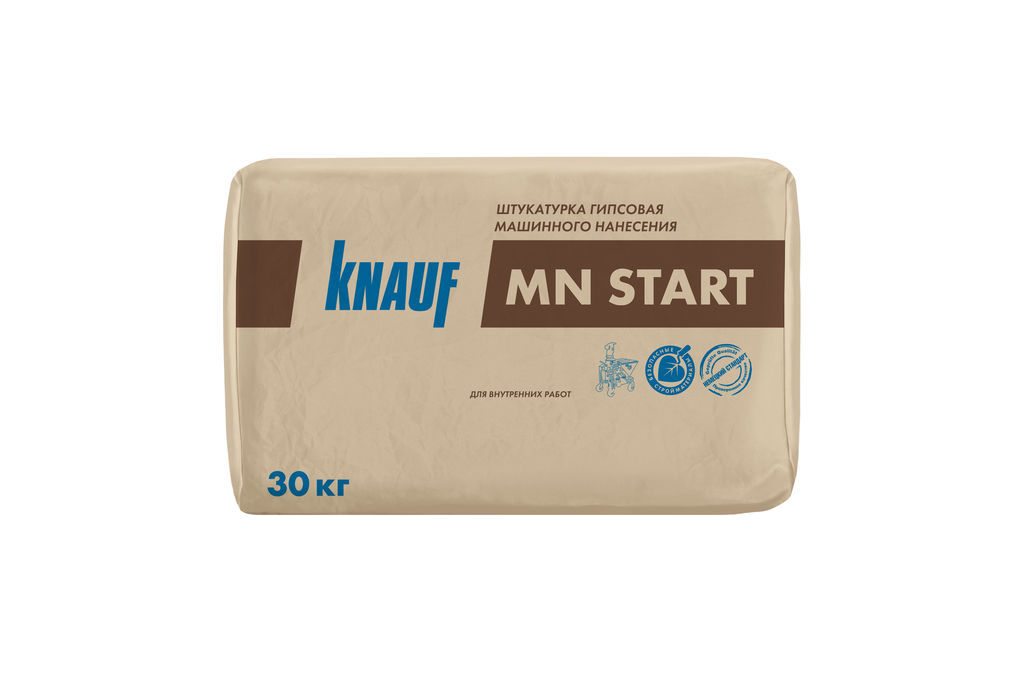 Штукатурка КНАУФ-МН СТАРТ предназначена для оштукатуривания стен внутри помещений машинным способом с помощью штукатурных машин, например, PFT G5, PFT G4.