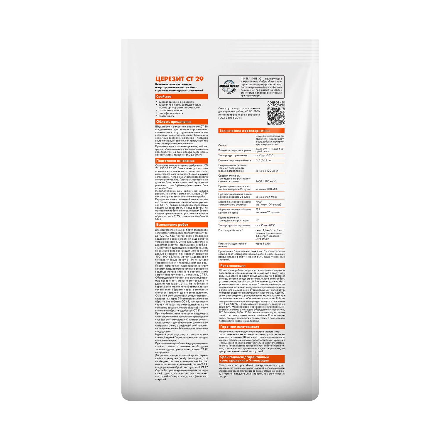 Штукатурка и ремонтная шпаклевка CT 29 предназначена для ремонта, выравнивания и оштукатуривания цементно-известковых, цементно-песчаных, бетонных и кирпичных оснований на стенах и потолках внутри и снаружи зданий, как при ручном, так и механизированном нанесении.