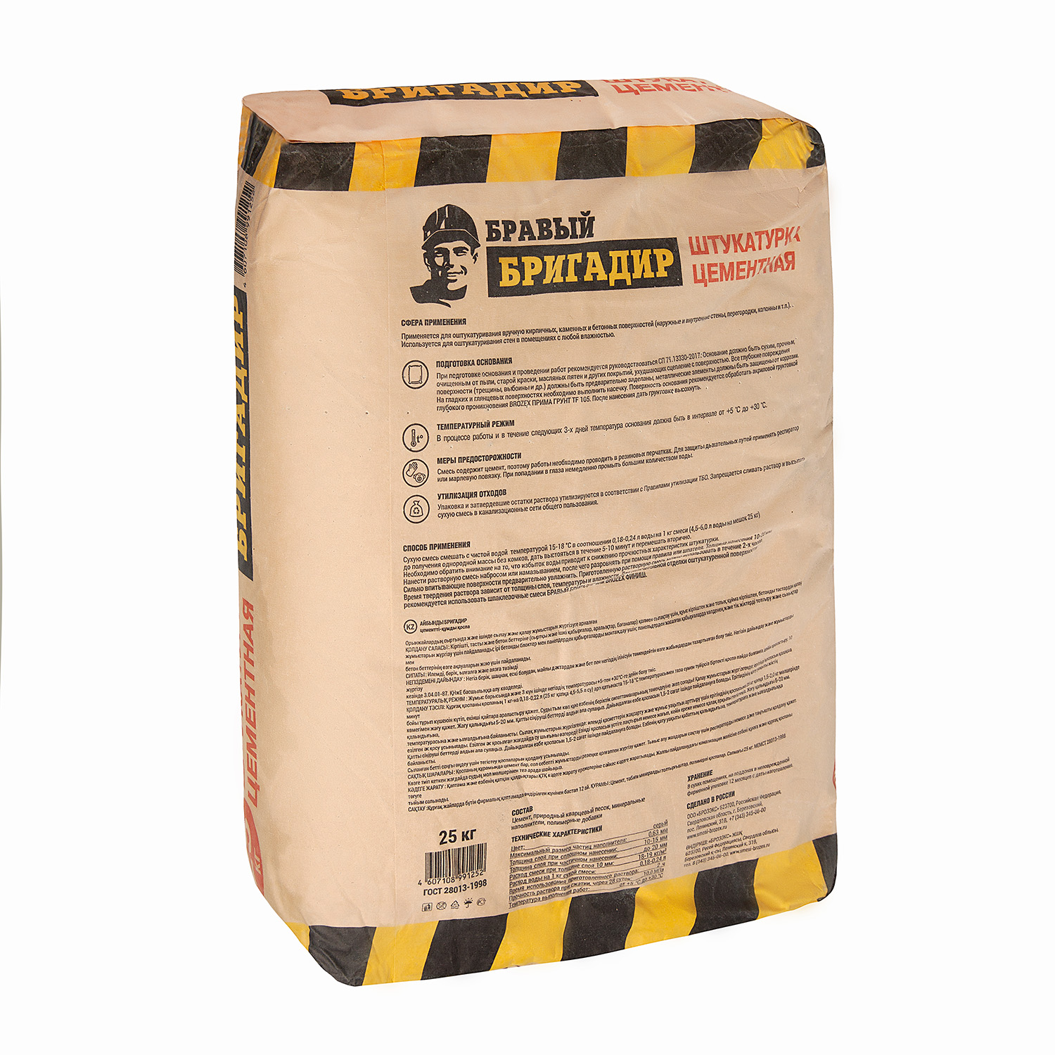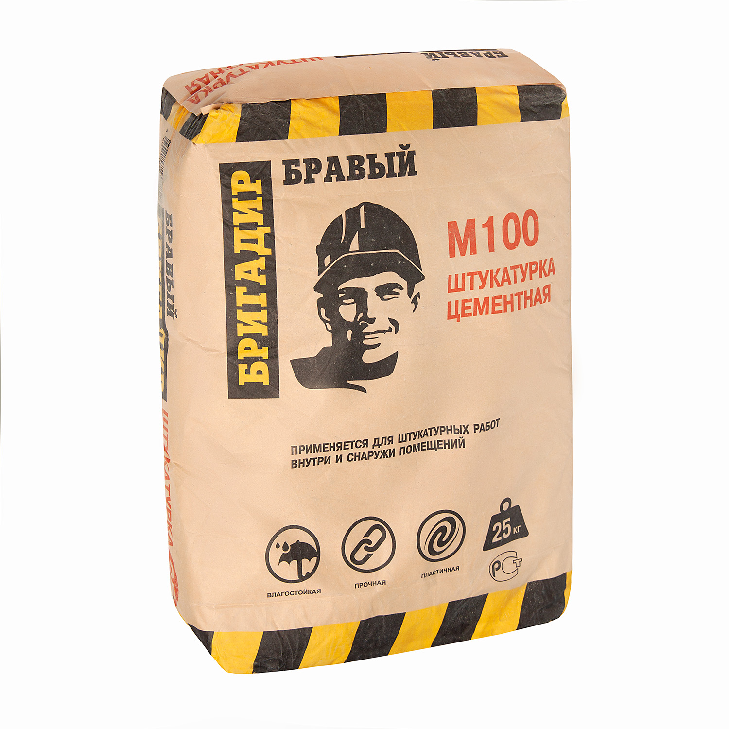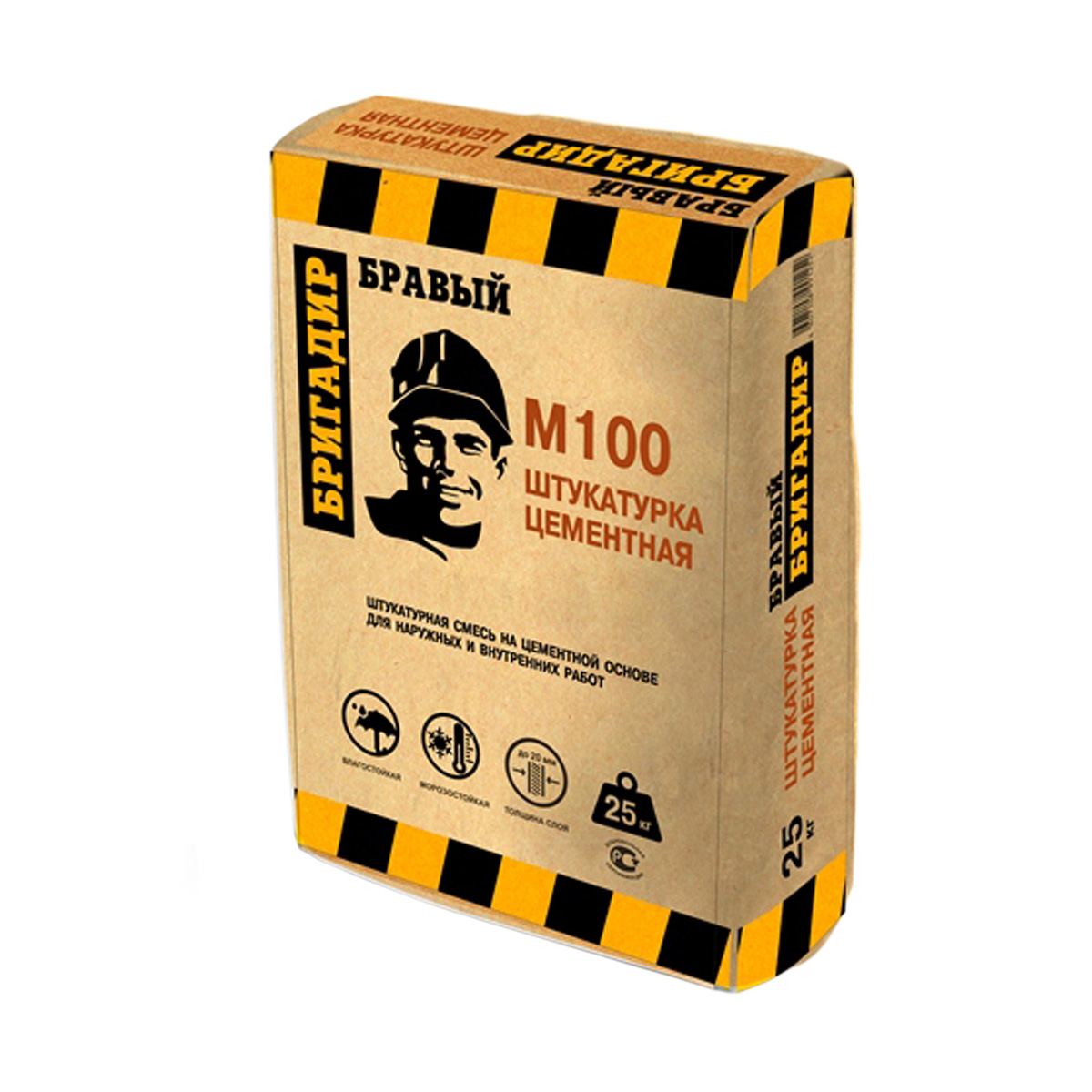 ПРЕДНАЗНАЧЕН: Бравый Бригадир M-100 применяется для оштукатуривания вручную кирпичных, каменных и бетонных поверхностей (наружные и внутренние стены, перегородки, колонны и т.п.). Используется для оштукатуривания стен в помещениях с любой влажностью.