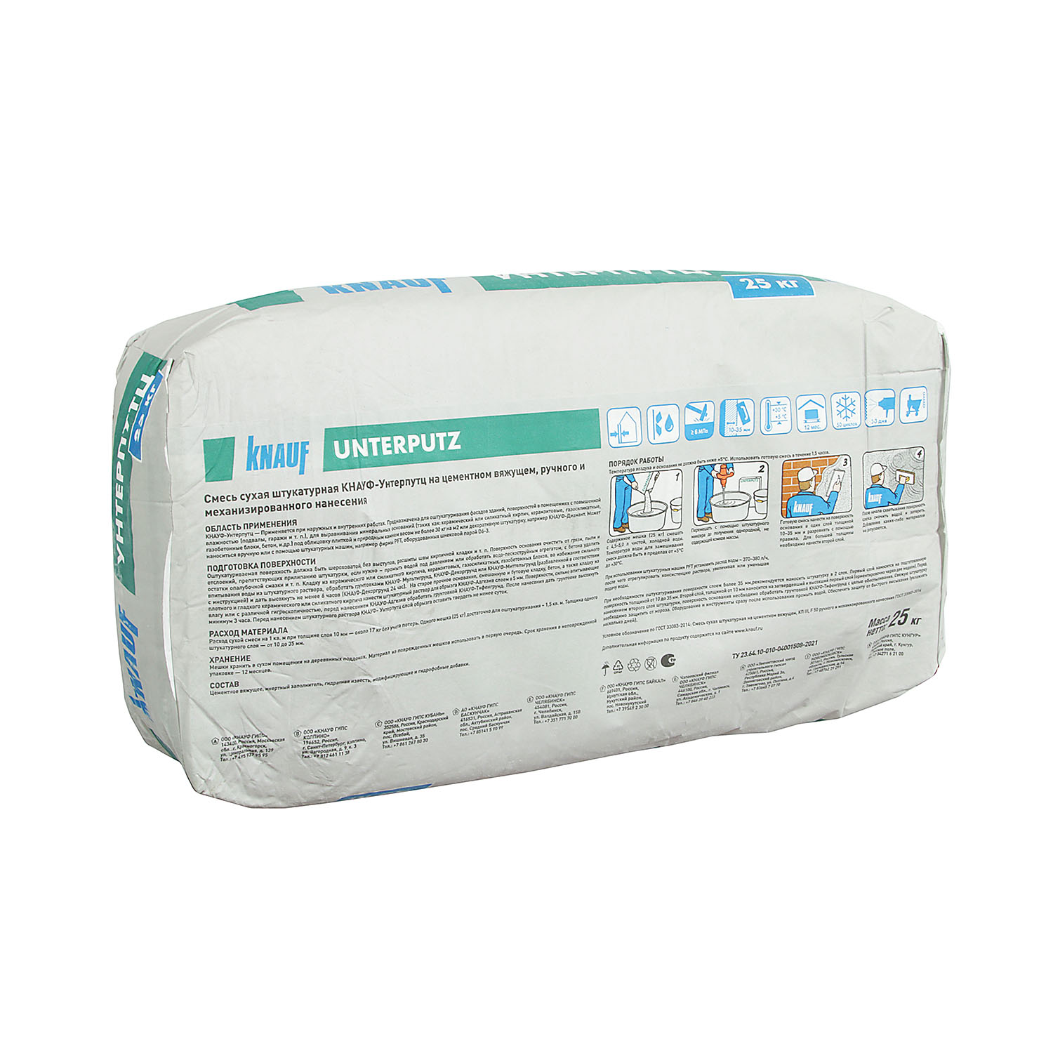 Смесь КНАУФ-Унтерпутц предназначена для высококачественного оштукатуривания фасадов и каменных, бетонных оснований в помещениях с повышенной влажностью (подвалы, прачечные, производственные помещения и т.п.) под последующее нанесение на них декоративных покрытий (декоративных штукатурок КНАУФ-Диамант, краски, облицовочной плитки и т.п.).