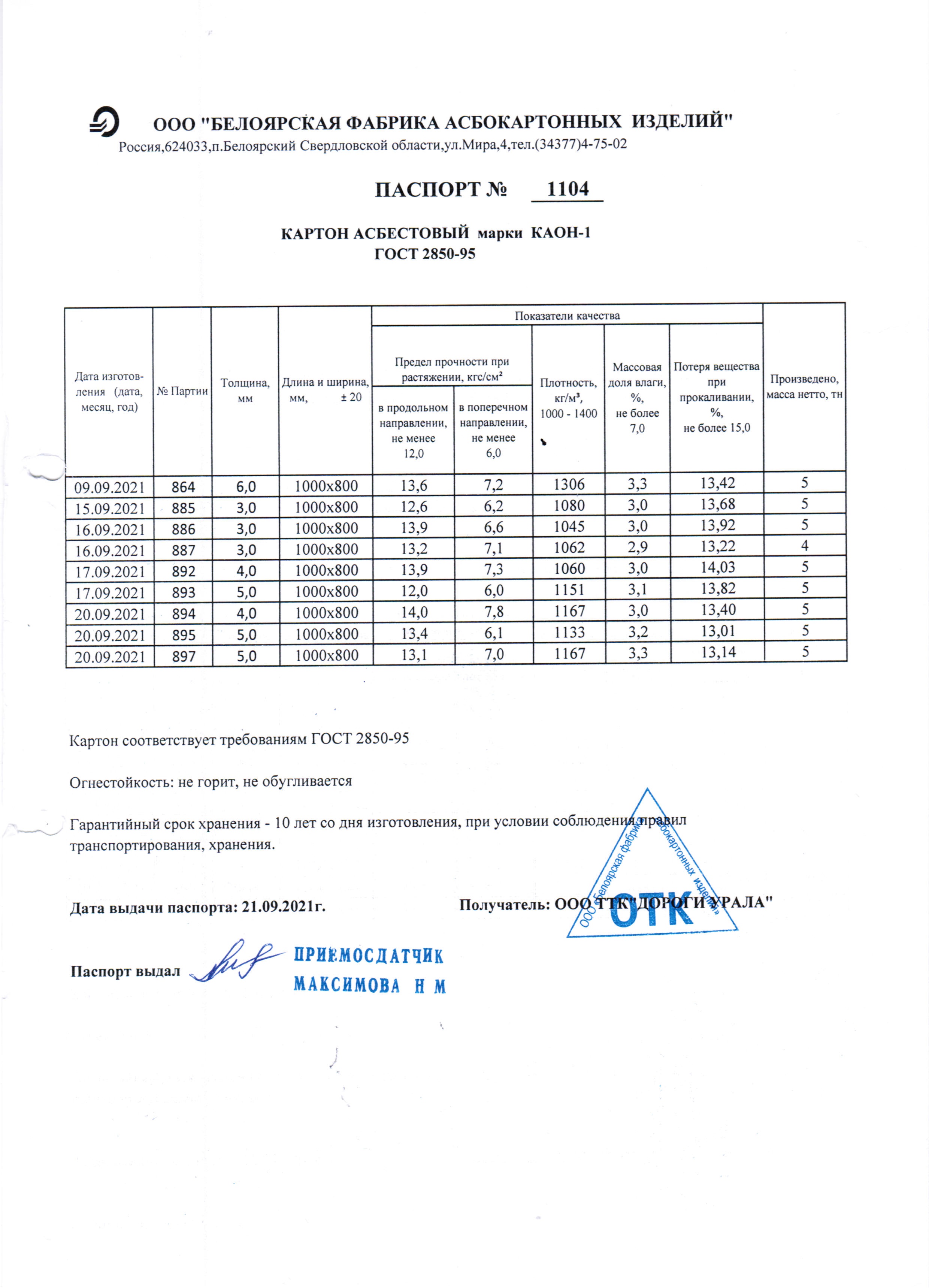 Асбестовый картон общего назначения изготавливают из волокна хризотилового асбеста с добавлением небольшого количества связующего (крахмала). Асбокартон выпускается толщиной от 2,0 до 10 мм и размером 800 мм х 1000 мм.