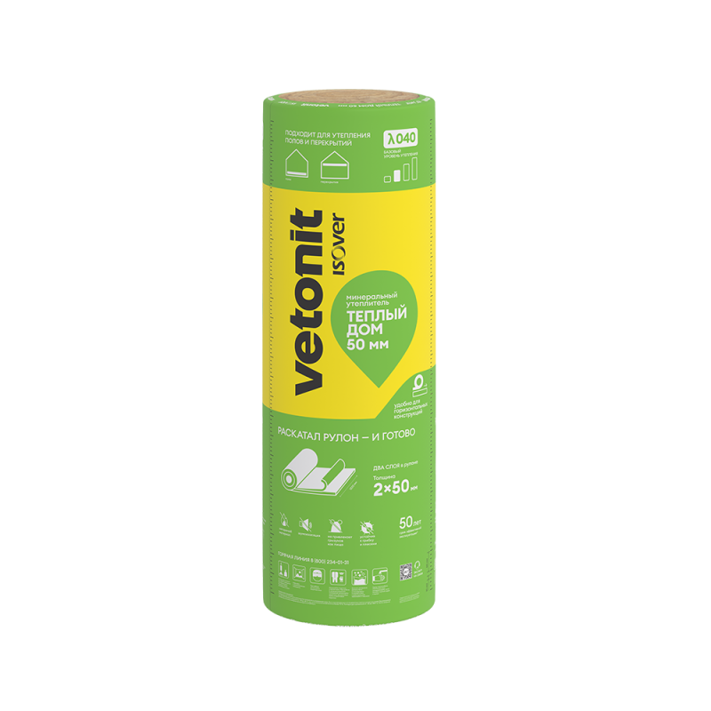 Легко выбрать нужную толщину при работе с разными видами конструкций: в упаковке — два мата по 50 мм,Удобен для утепления больших горизонтальных поверхностей: раскатал рулон — и готово!,