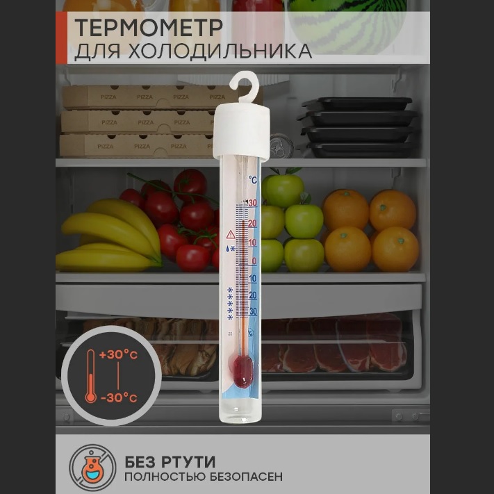 Термометр предназначен для измерения температуры внутри холодильных и морозильных камер, погребов, овощехранилищ, складов и других местах, где температура меняется в диапазоне от -30 до +30 градусов.