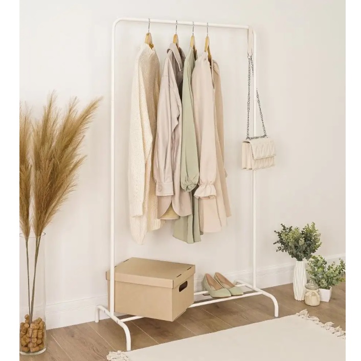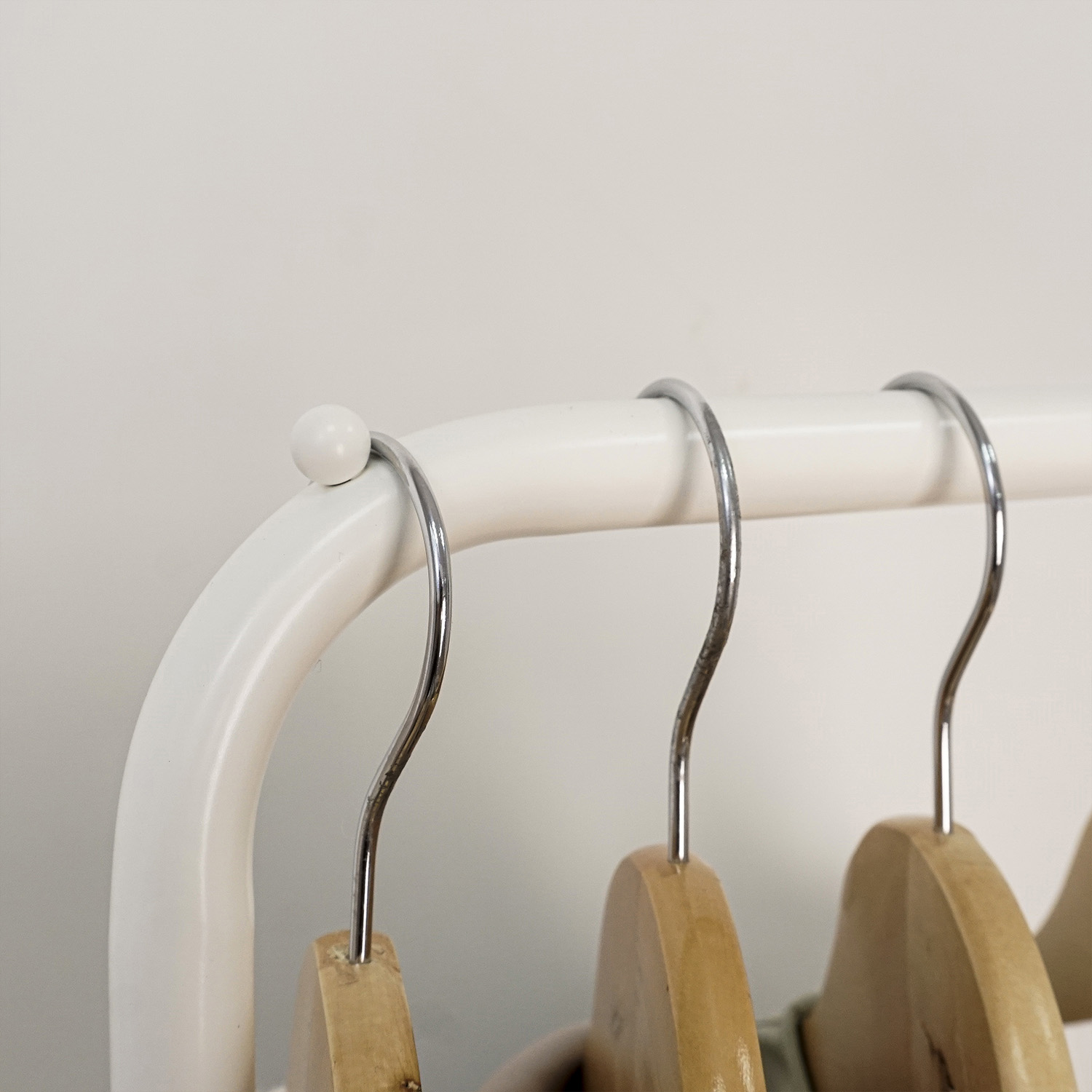 На ней с легкостью удастся разместить около 15 плечиков. Они не будут соскальзывать на пол за счет наличия ограничителей. Дополнительно предусмотрен крючок, который фиксируется сверху.