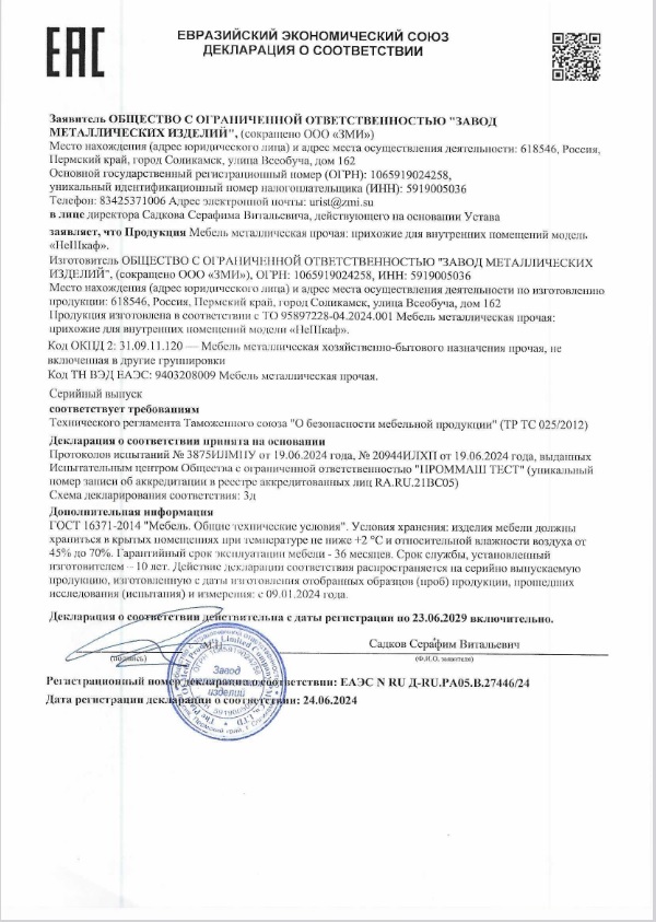 Материал — сталь, порошково-полимерное покрытие, пластик, ЛДСП