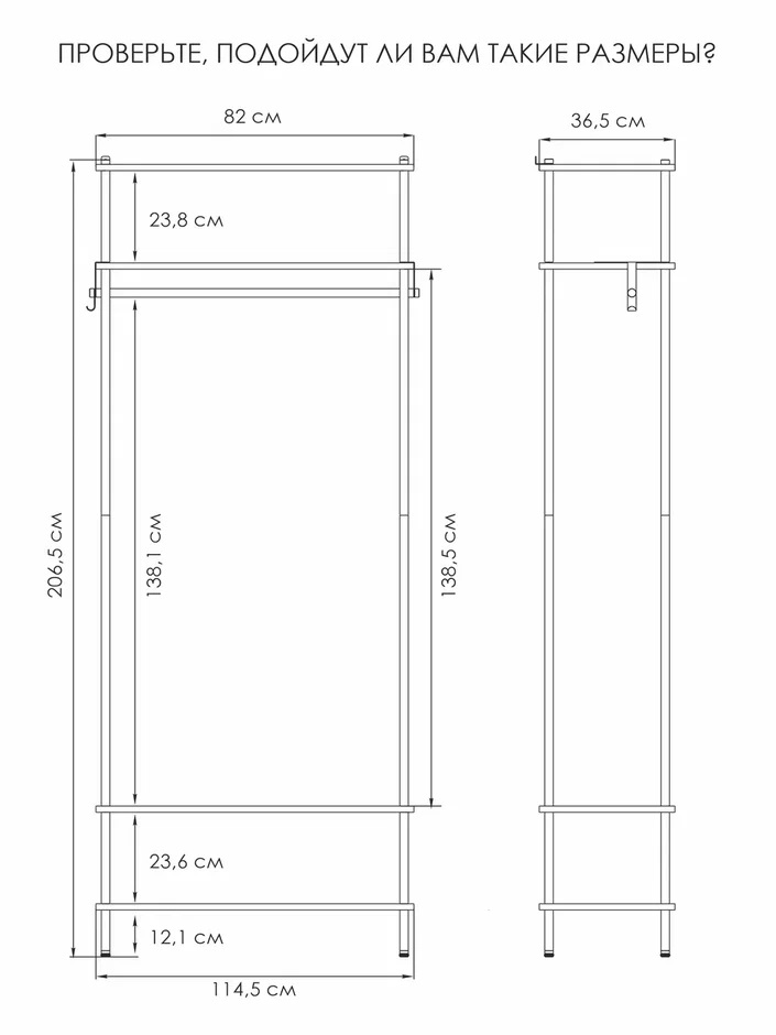 Габариты (Д*Ш*В) — 82,5х36,5х206,5 см
