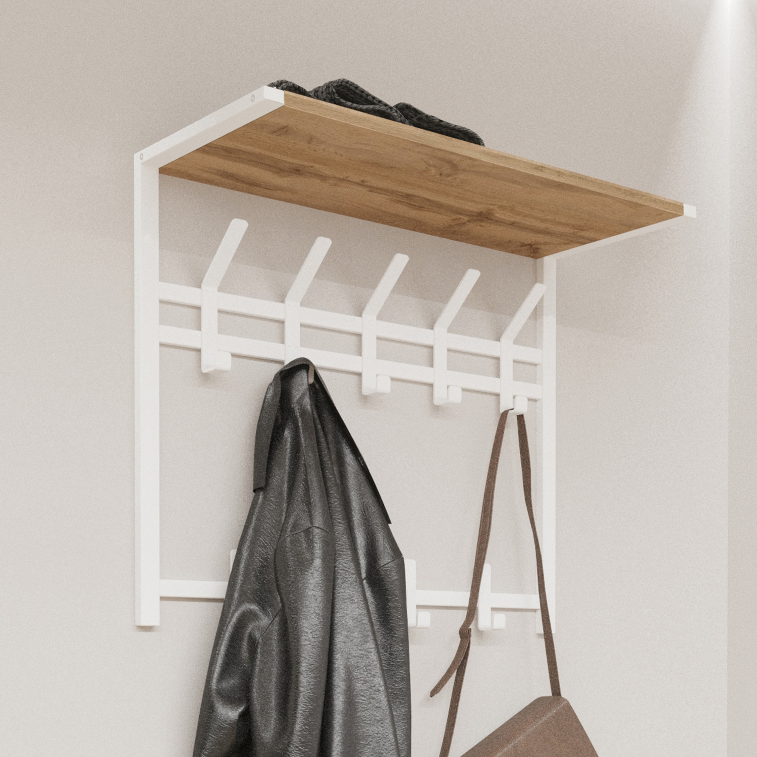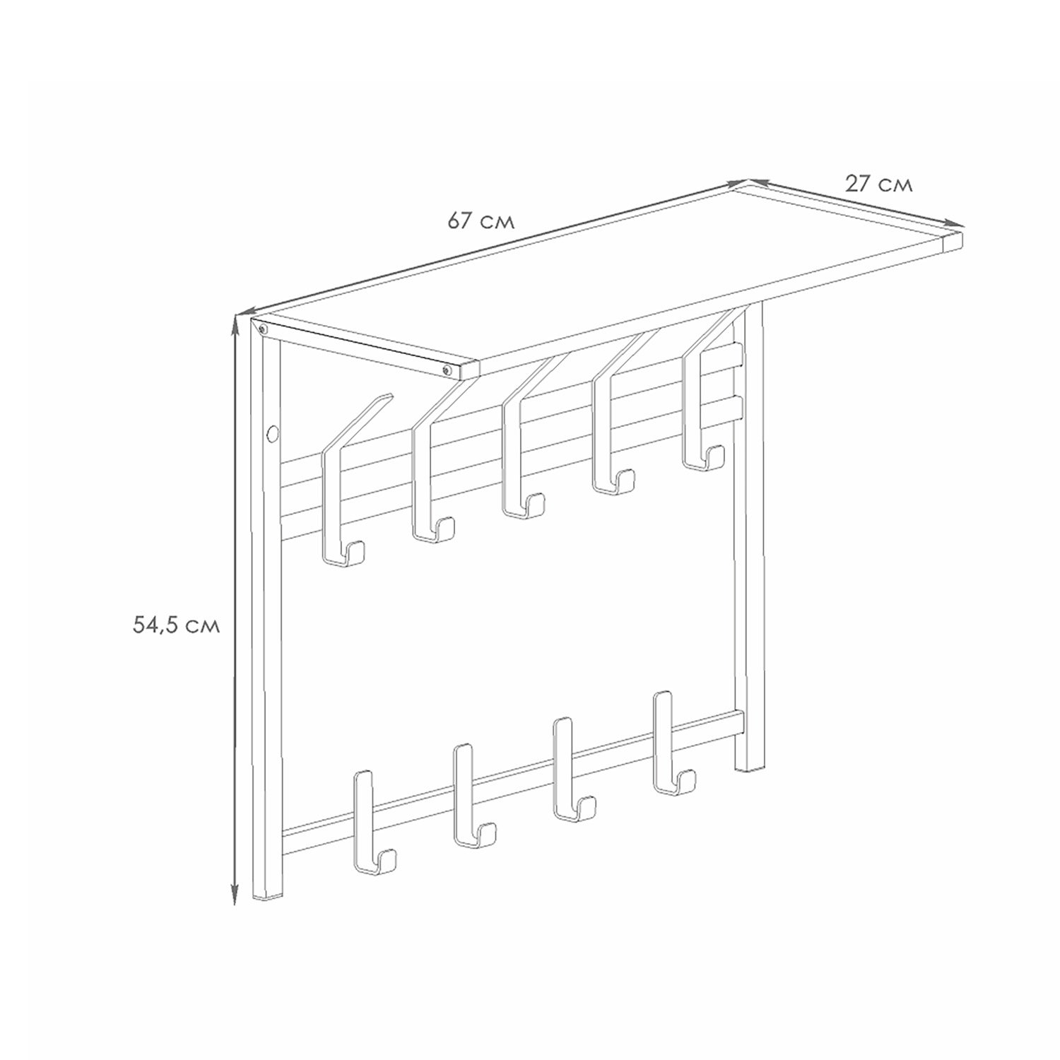 9 двойных стильных крючков позволят вам подвесить одежду, шапки или сумки, удобно расположив их для быстрого доступа. Каркас изготовлен из металлической трубы, что делает такую мебель долговечной и прочной, способной выдерживать значительную нагрузку.