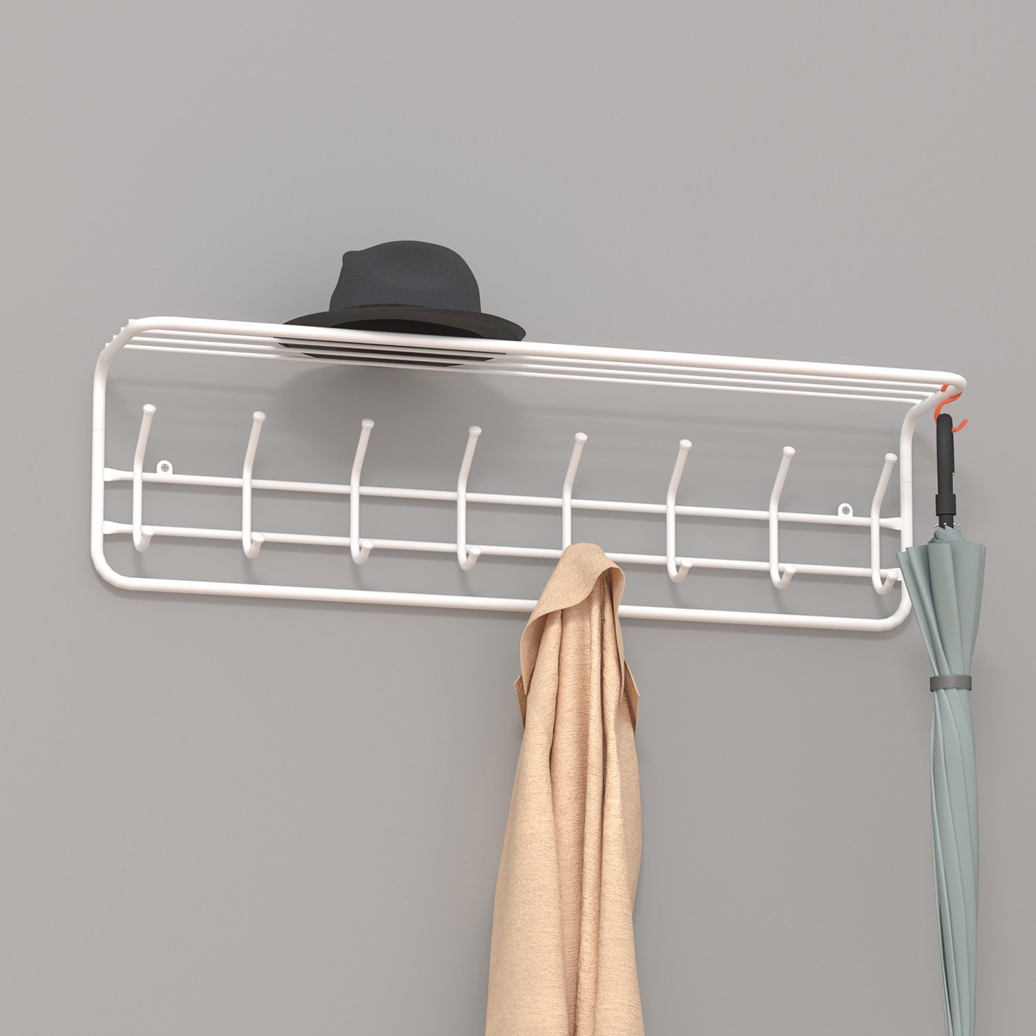 — компактная вешалка с 8-ю крючками;