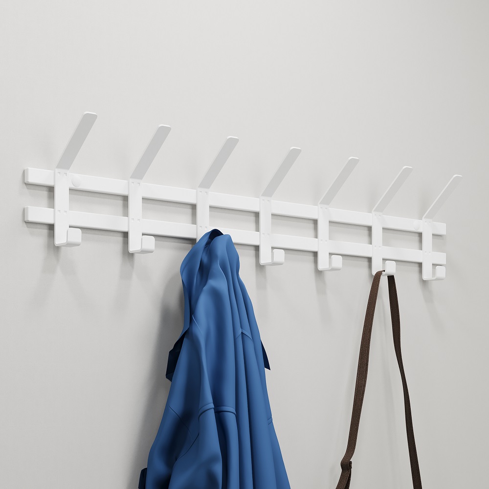 Универсальная вешалка для хранения вещей имеет 7 двойных крючков - каждый из них выдерживает до 7 кг постоянной нагрузки.