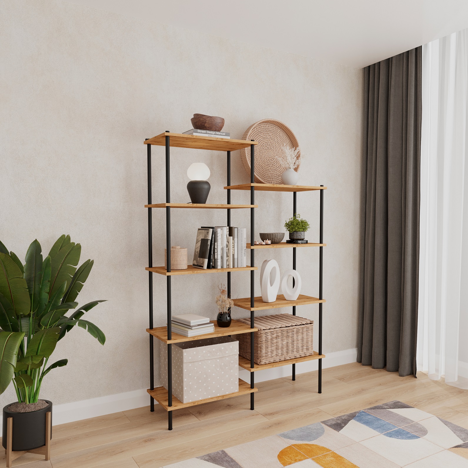- полки из ЛДСП с текстурой натурального дерева.