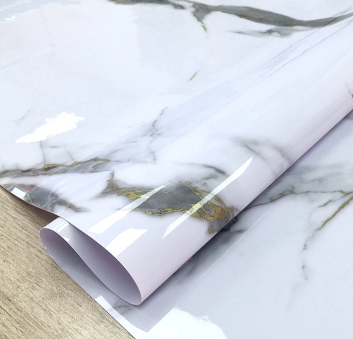 Клеёнка без основы "термо" гладкая "Мрамор белый" шир.0,6м,толщ.0,65мм GW-52246 "ТермоКлеёнка" *20