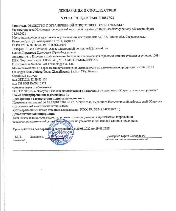 Прозрачное покрытие торговой марки Crystal – альтернатива текстильным изделиям.
