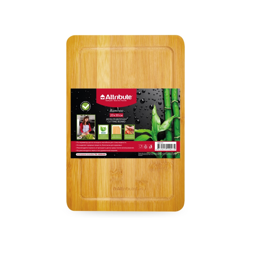 Доска разделочная BAMBOO 20х30х1 см станет не только надежным помощником в резке продуктов, но и стильным украшением кухни. Разделояная доска изготовлена из натурального бамбука. По краям доски для резки продуктов имеются канавки для жидкостей, чтобы сок от овощей и мяса не попадал на стол. Доска разделочная подходит для красивой сервировки жареного мяса, овощей и прочих блюд. Рекомендуется после каждого использования сразу протирать доску насухо. Не замачивать в воде. Не сушить около отопительных приборов и рядом с плитой. Хранить вертикально или в подвешенном состоянии.