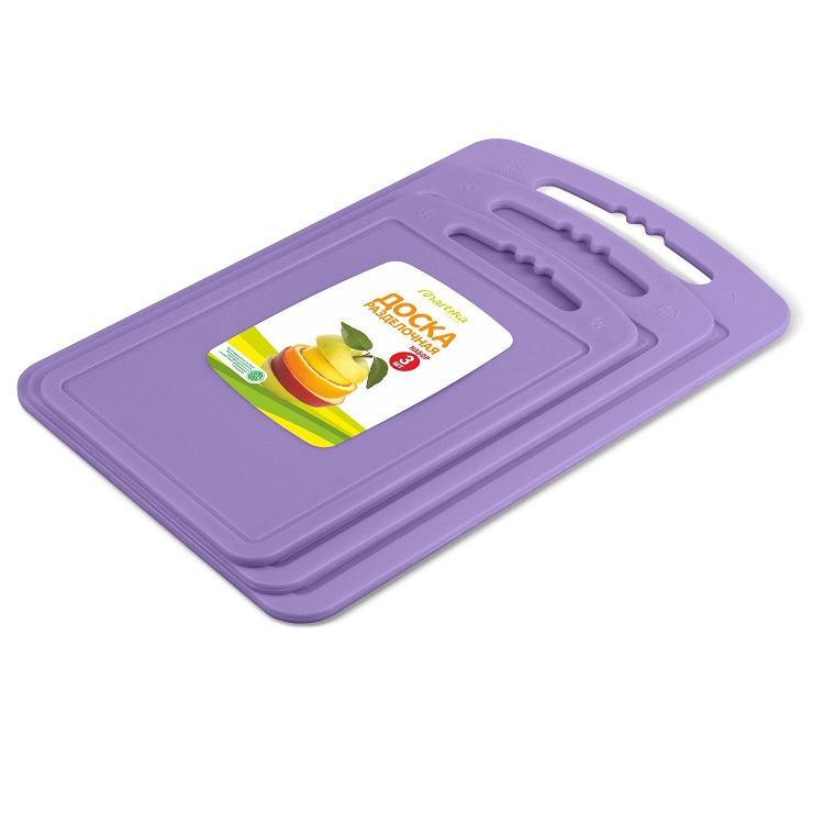 В набор входят 3 доски из прочного полипропилена размерами 15х24, 18х28, 20х32 см. Разделочные доски составляют функциональный набор в одном стиле. Удобно использовать для различных видов продуктов. Текстурированная матовая поверхность защищает от образования царапин, скольжения и не тупит лезвие ножа. Доски легко мыть, в т.ч. в посудомоечной машине, они не впитывают запахи и не окрашиваются от продуктов.