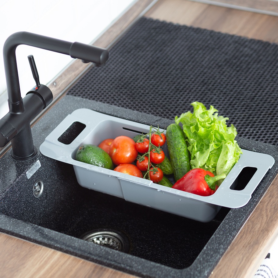 Дуршлаг-сушилка раздвижной на раковину можно использовать дома, на даче, брать с собой на пикник. Такой помощник оптимален для мытья фруктов, овощей, грибов, макаронных изделий, разморозки рыбы и мяса, для просушивания посуды и столовых приборов. Чтобы изменить размер дуршлага, возьмитесь за ручки, растяните их по ширине Вашей мойки, наденьте ручки на ее края. Высококачественный материал не боится высоких температур даже при постоянном контакте с водой и подходит для мытья в посудомоечной машине. Дуршлаг-сушилка имеет перфорированные стенки и дно, позволяющие стечь лишней воде после завершения процесса мытья. Разборная конструкция позволяет быстро и эффективно удалять любые загрязнения. Несмотря на большую вместимость дуршлаг занимает мало места на полке. Он легкий и компактный. Уникальность изделия заключается в том, что дуршлаг – сушилку можно использовать как в собранном, так и в раздвижном виде.