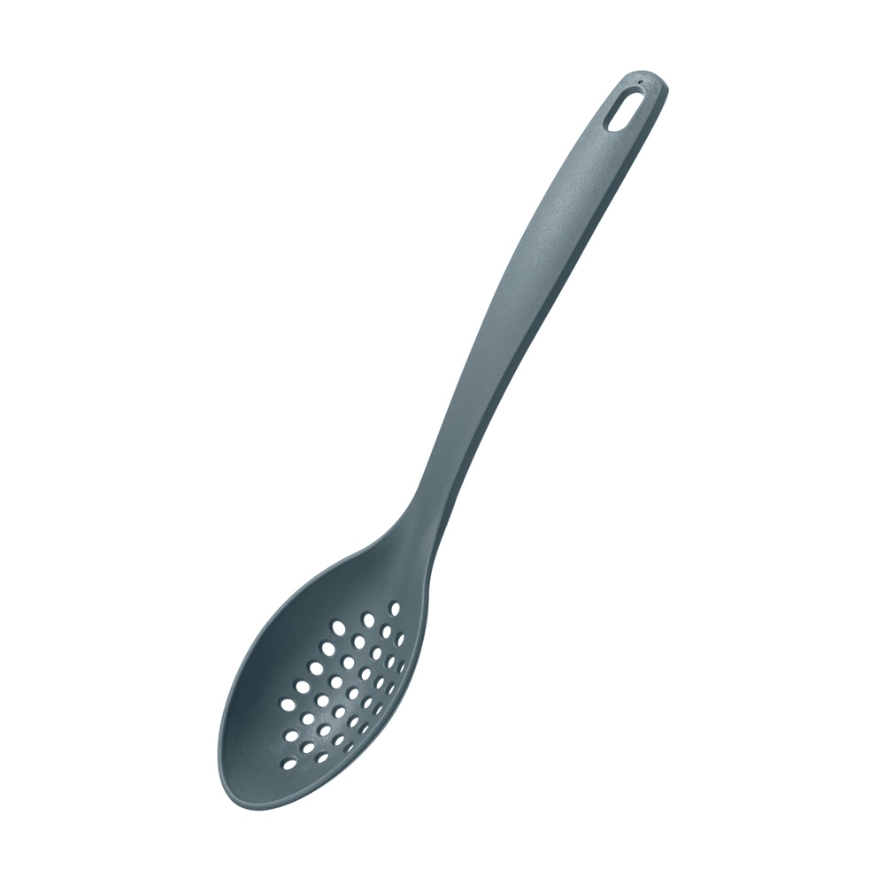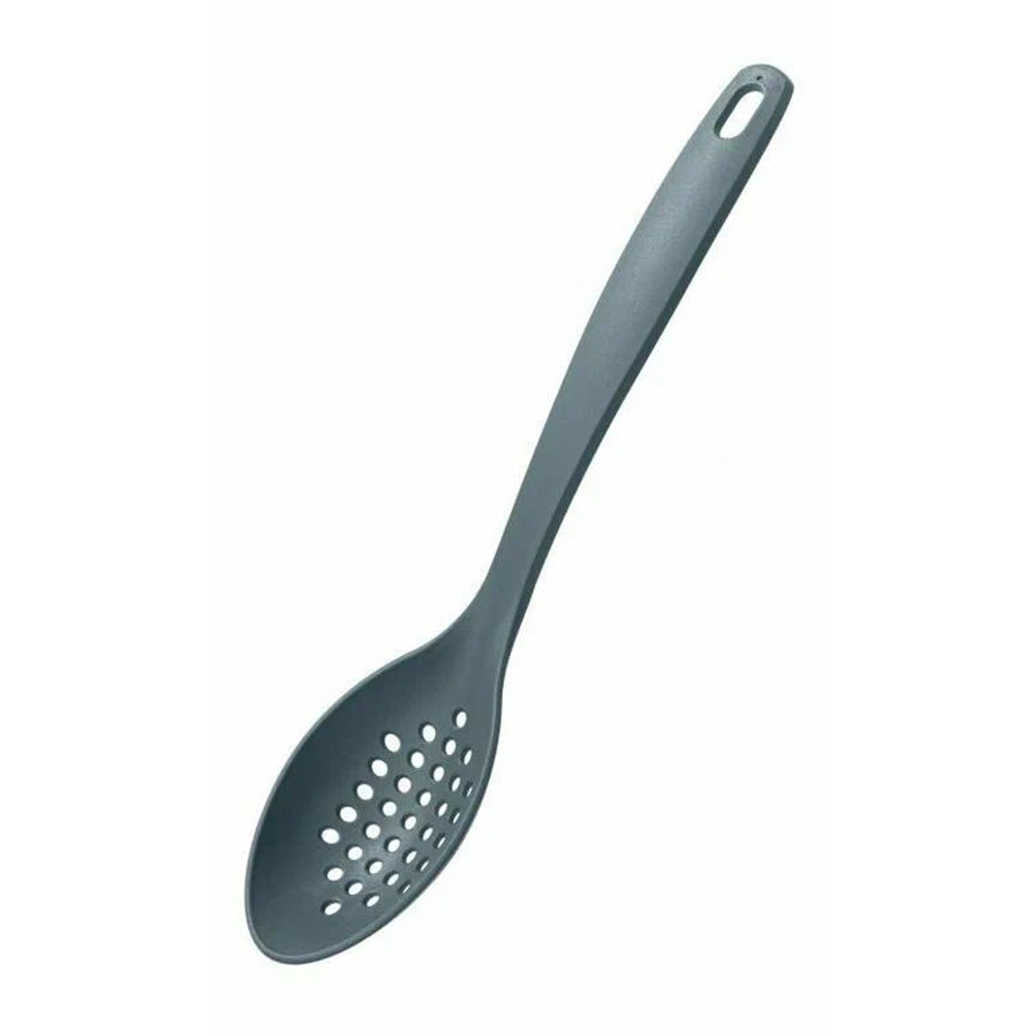 Поварская ложка с отверстиями BASIC от Phibo изготавливается из стеклонаполненного полиамида: он выдерживает температуру до 200°C, не повреждает тефлоновую посуду и моется в посудомойке.