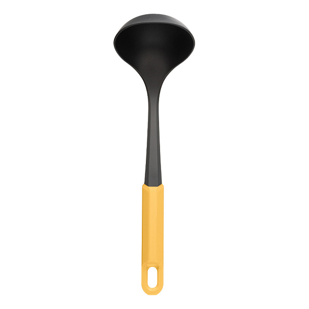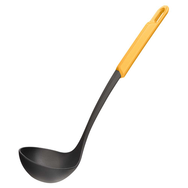 Половник Fiesta изготавливается из стеклонаполненного полиамида: он выдерживает температуру до 200°C не повреждает посуду с антипригарным покрытием, моется в посудомоечной машине.