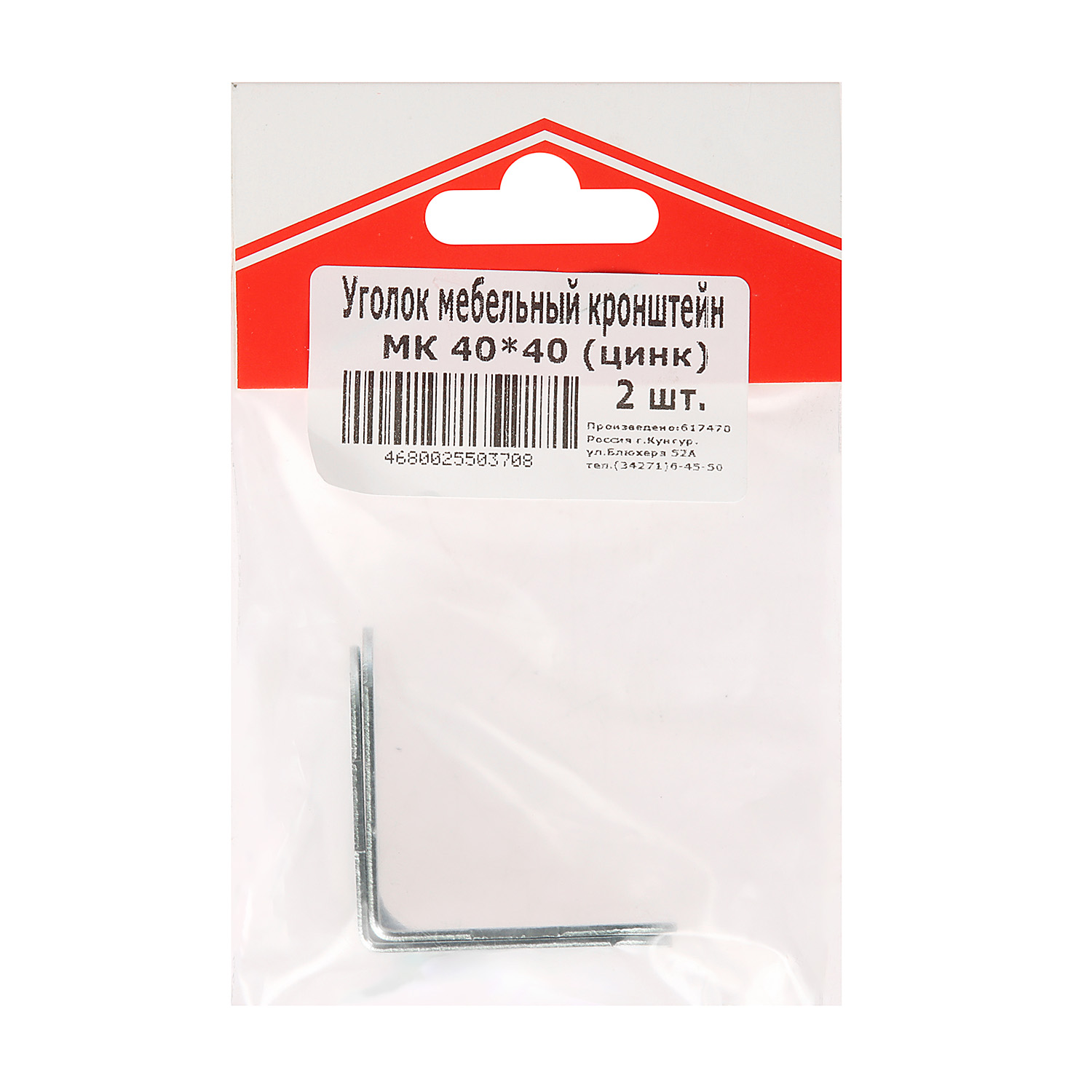 Уголок мебельный (кронштейн) 40*40 цинк(комплект 2 шт) ДомоСтрой *10