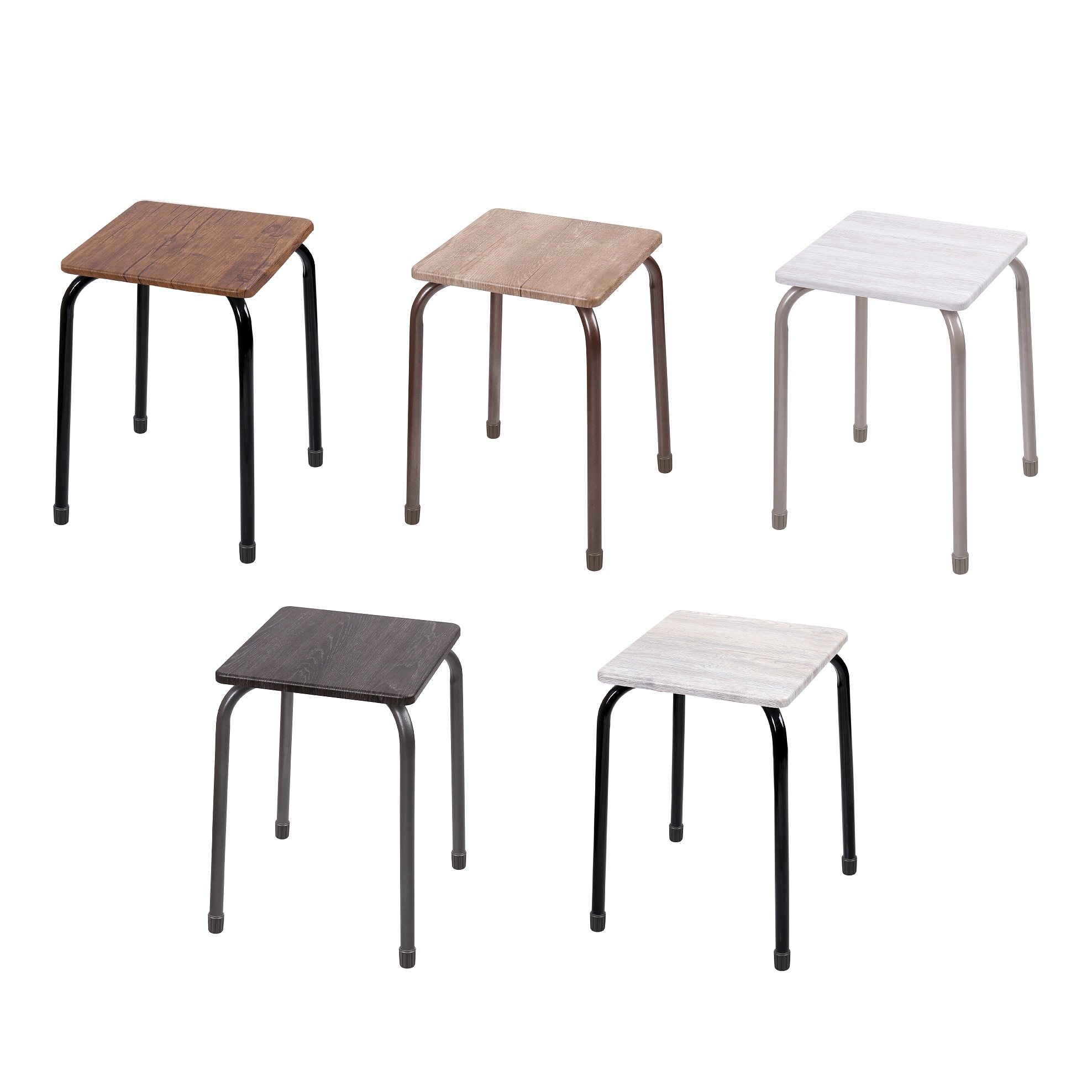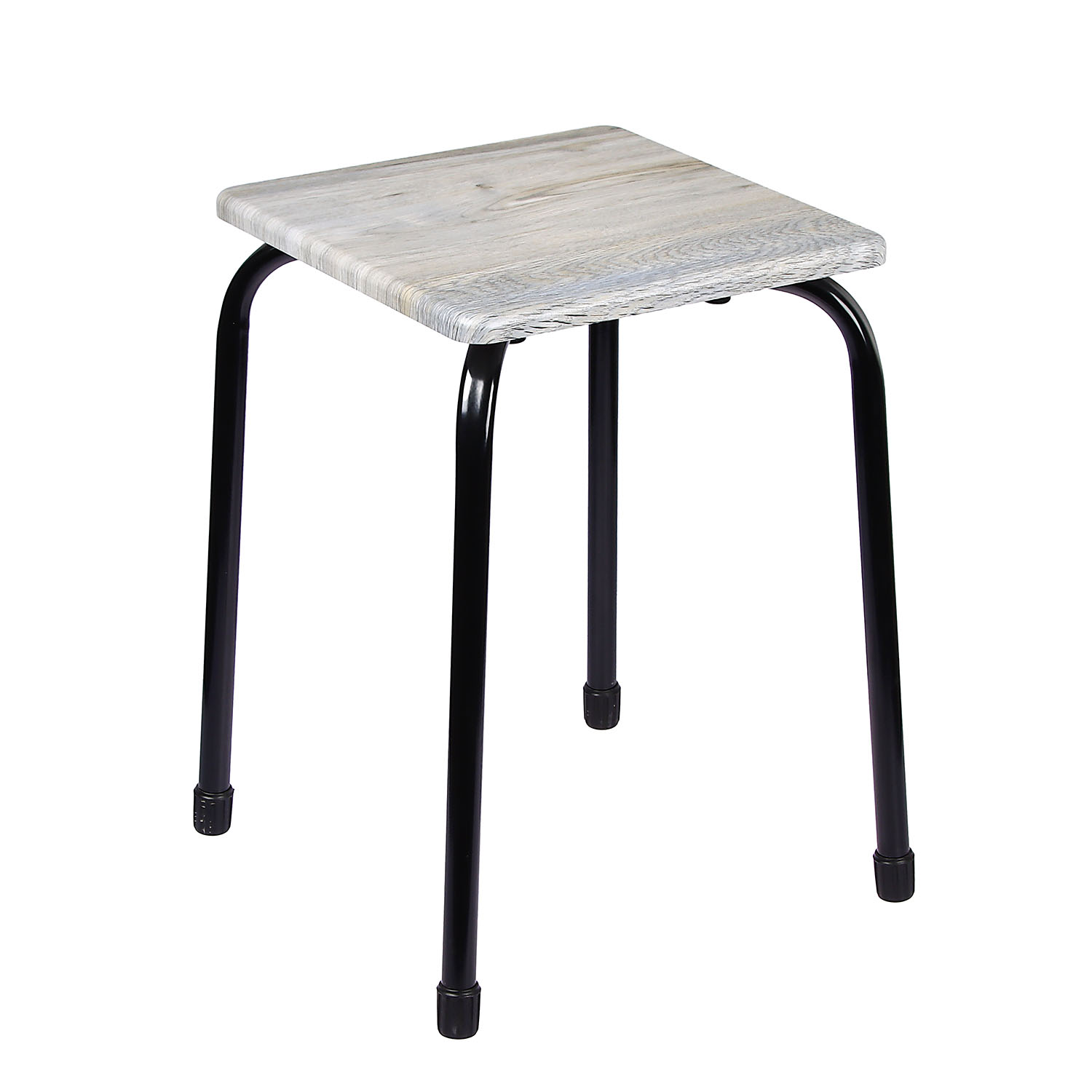 Табурет на четырех опорах с сиденьем из МДФ с древесным декором.