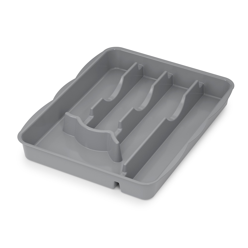 Лоток для столовых приборов изготовлен из прочного и высококачественного пластика. В такой лоток поместится большое количество столовых приборов, при этом они будут упорядочены. Изделие легко достать и помыть в случае необходимости.Лоток имеет пять отделений: три отделения для вилок, ложек, одно горизонтальное для чайных ложек и десертных вилок, одно большое отделение для ножей и остальных приборов.