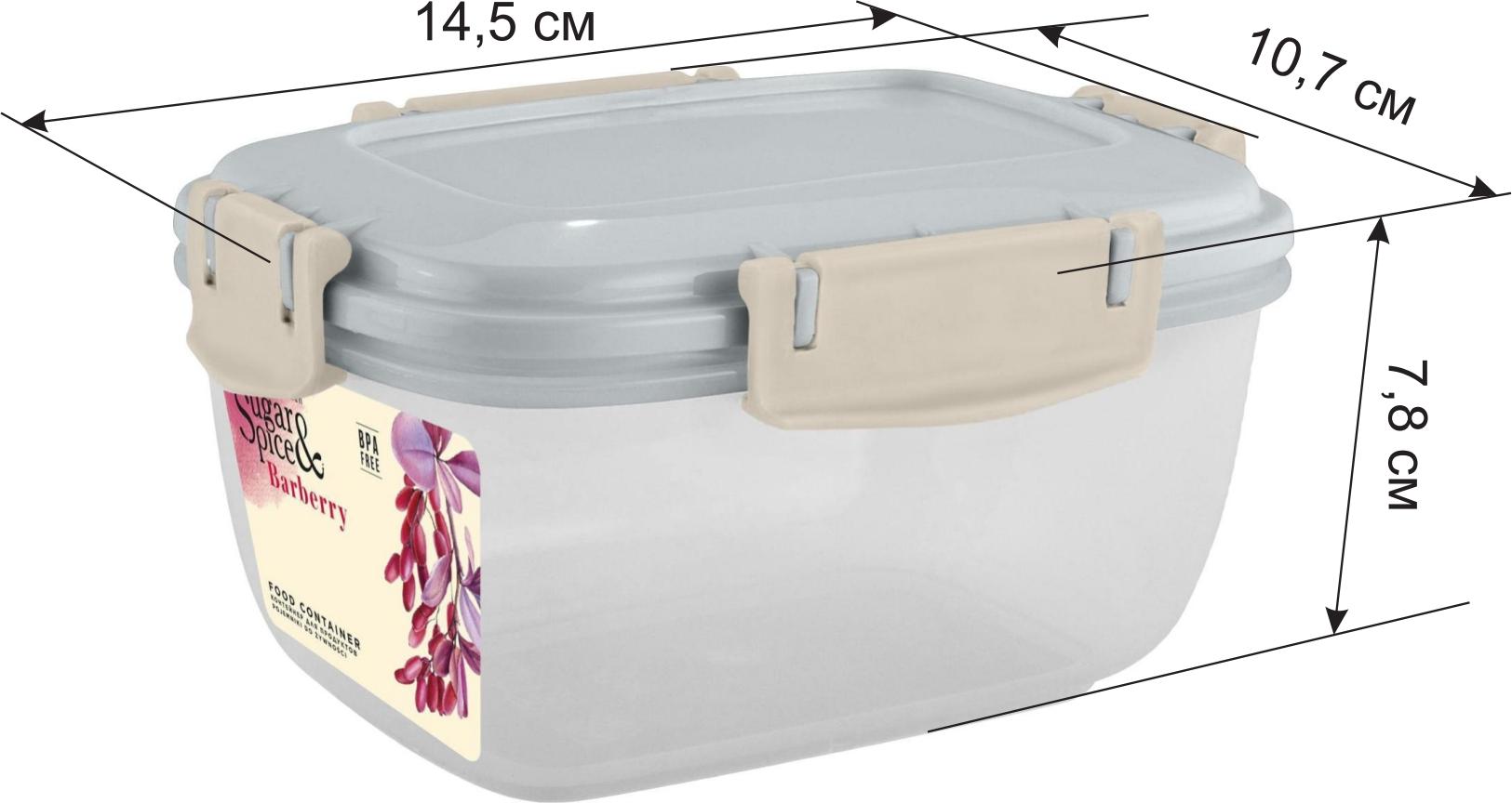Контейнер для продуктов Sugar&Spice Barberry герметичный 0,45л квадратный – прекрасное решение для переноски и хранения еды. Крышка со специальными блокирующими защелками с 4-х сторон и силиконовым уплотнителем обеспечивает 100% герметичность. Продукты дольше остаются свежими, сохраняя свой первоначальный вкус. Благодаря прозрачному корпусу можно увидеть содержимое контейнера, не открывая его. Контейнер можно мыть в посудомоечной машине, разогревать в микроволновой печи и хранить в холодильнике. Фиксируемая штабелируемость контейнеров позволит сохранить порядок на ваших полках и сэкономить пространство. Коллекция контейнеров Barberry разработана с учетом потребности в разных литражах, начиная от самого маленького 0,35л до самого большого 1,8л. Маленькие контейнеры предназначены для порционной переноски, большие - для хранения продуктов дома. Размер контейнера: 14,5х10,7х7,8см. Температурный режим: от -20°C до +70°С.