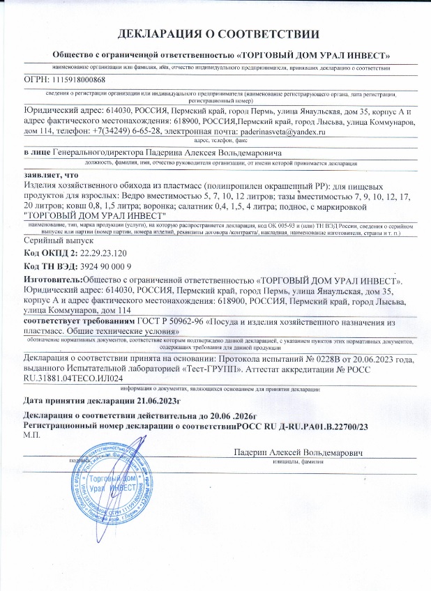 Ведро пластмассовое для хранения и переноса жидкостей, меда, сыпучих продуктов, сбора ягод и для других бытовых целей. Пригодится в доме и на даче.