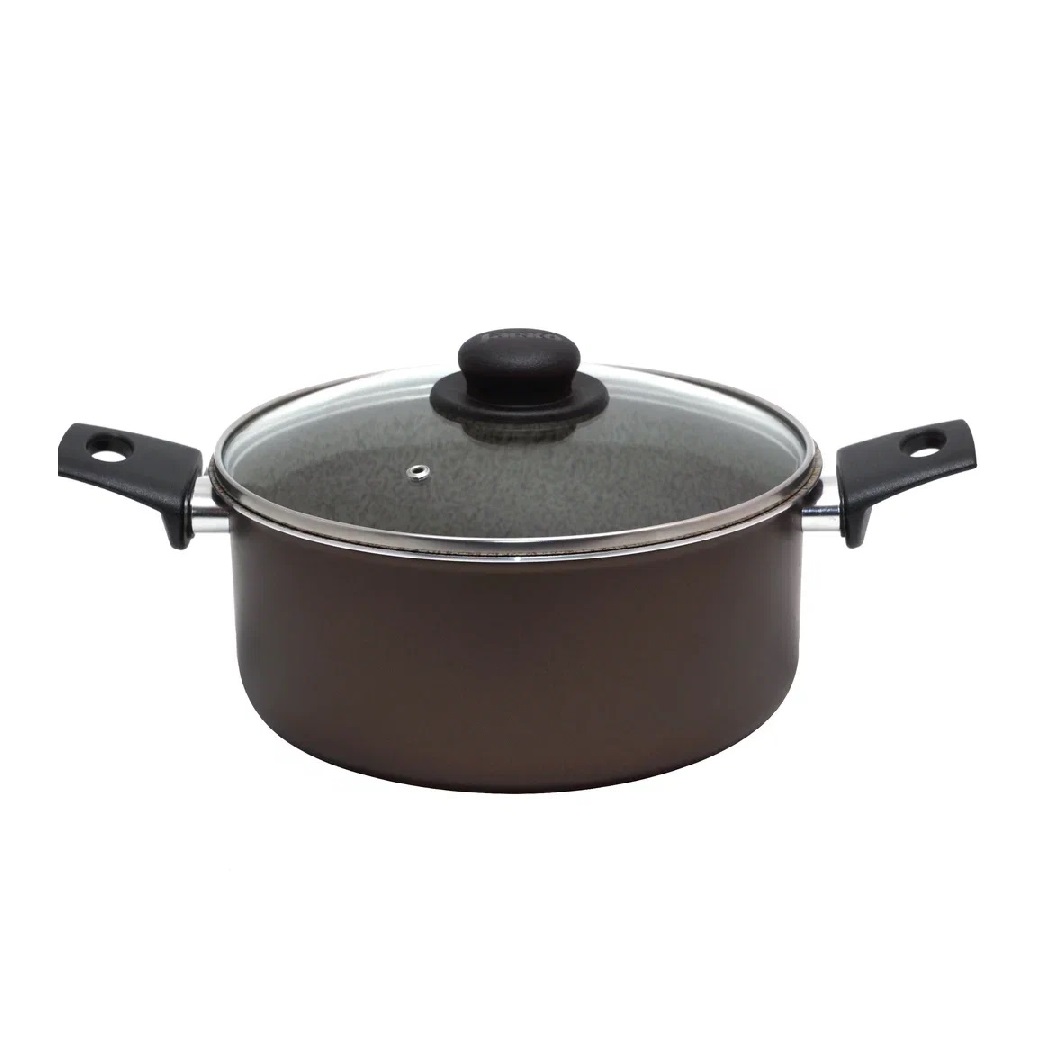 Внешнее покрытие холодного шоколадного цвета, внутренне 7-ти слойное антипригарное покрытие цвета "Бежевый гранит".