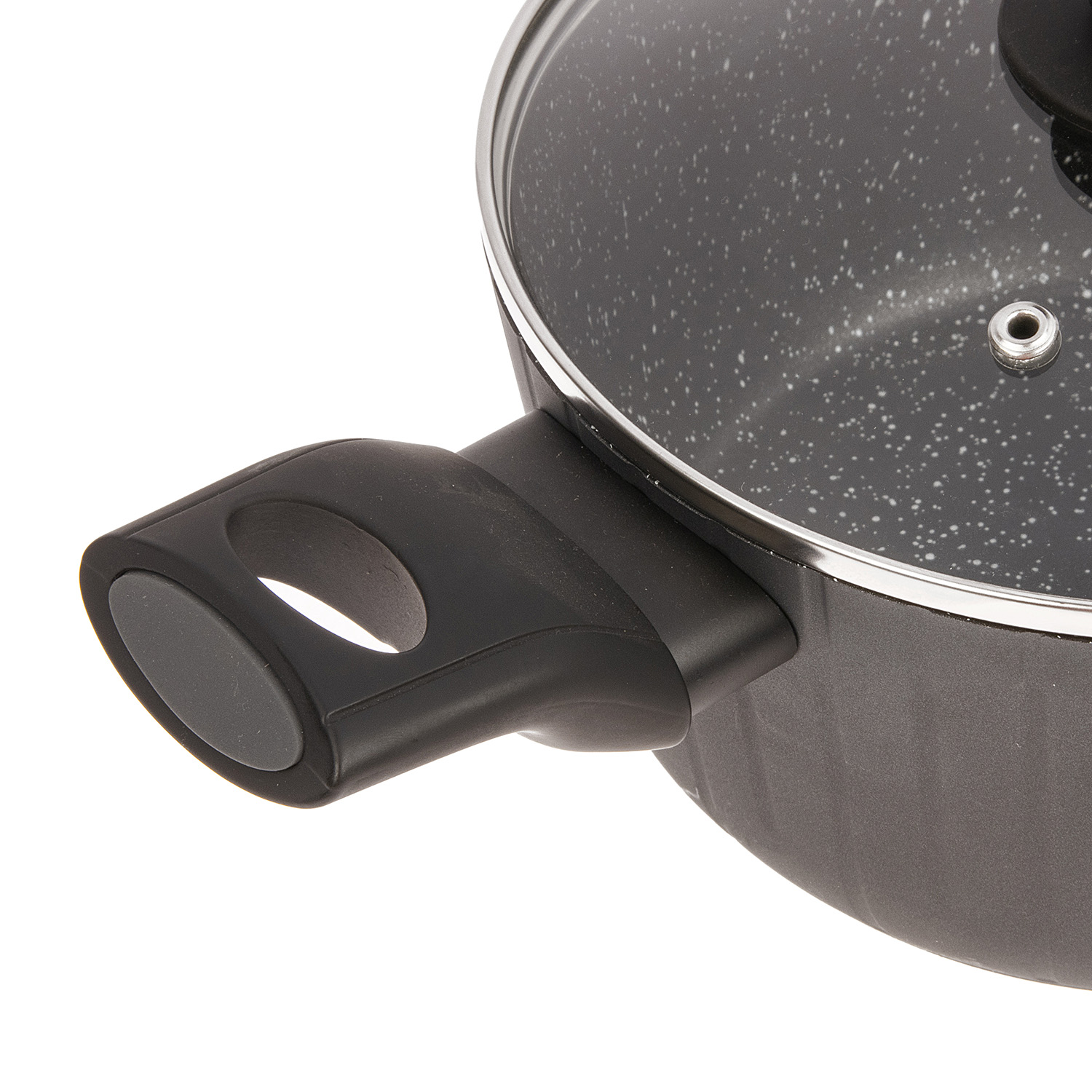 Особую прелесть линейке Terra придает контраст фактур и цветов: мягкий графит снаружи и яркая гранитная крошка внутри, глубокий черный цвет и строгая форма ручек. Изящный штрих - графичные лучи на поверхности подчеркивают ощущение природной красоты.