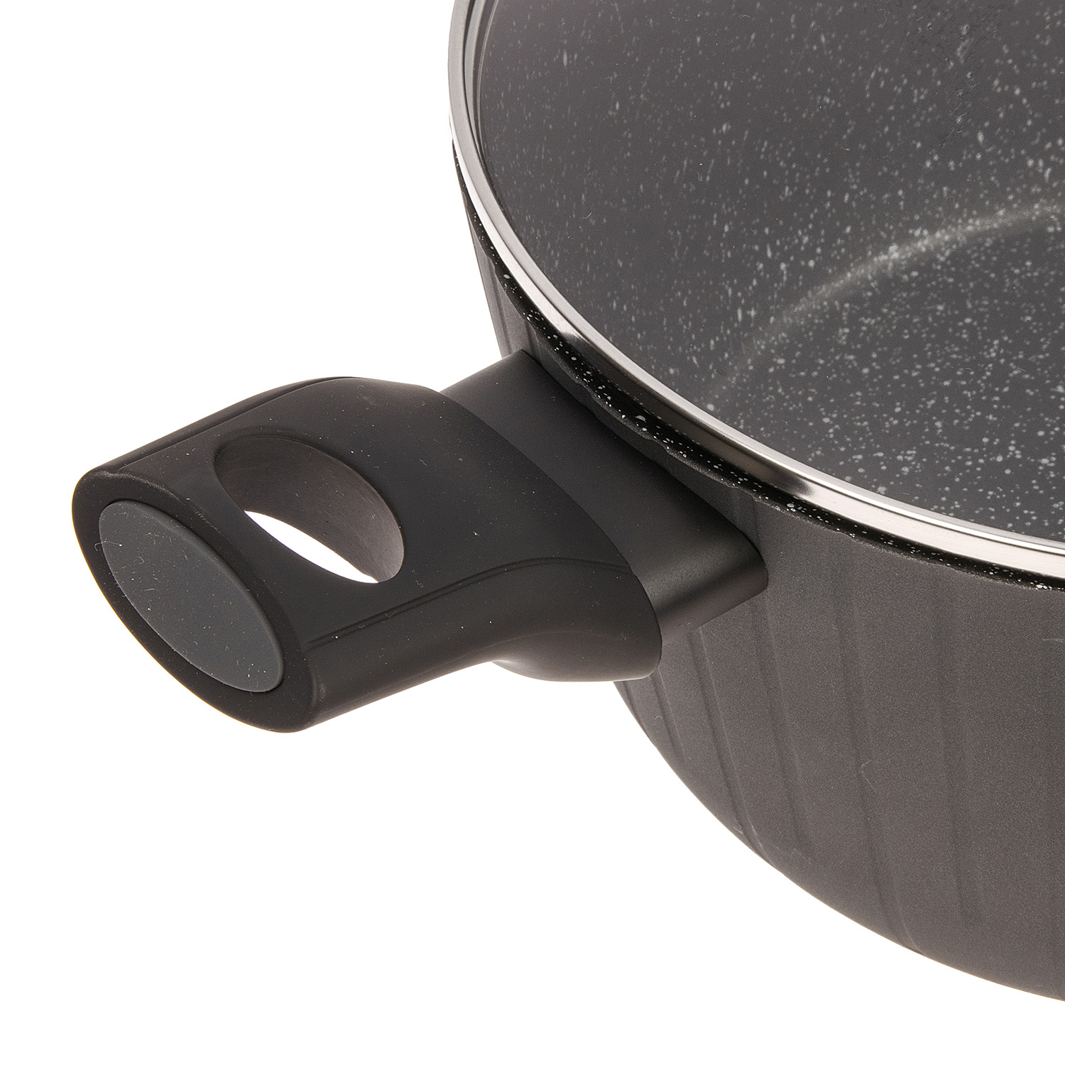 Особую прелесть линейке Terra придает контраст фактур и цветов: мягкий графит снаружи и яркая гранитная крошка внутри, глубокий черный цвет и строгая форма ручек. Изящный штрих - графичные лучи на поверхности подчеркивают ощущение природной красоты.