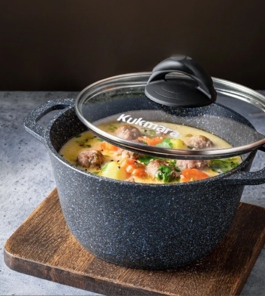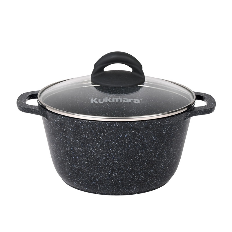 Новая линейка литой алюминиевой посуды с антипригарным покрытием «Granit», цвет black, сочетающую в себе стильный «гранитный» дизайн и удивительную прочность. Отличительная особенность данной линейки - корпуса посуды увеличенного объема – 2,5л, 3,5л, 4,5л с цельнолитыми ручками и стеклянной, накладной крышкой из термостойкого стекла с бакелитовой ручкой черного цвета, а также глубокие сковороды с высокими, слегка скошенными бортами. Геометрия корпусов посуды обеспечивает быстрый нагрев и равномерное распределение тепла. Посуда подходит для запекания, тушения, варки. Благодаря уникальному противопригорающему покрытию, обладающему исключительными антипригарными свойствами, прочностью и износостойкостью, посуда подходит для ежедневного использования и будет служить не один год. Высокая прочность антипригарного покрытия позволяет использовать неострые кухонные металлические принадлежности. Окрашенное дно кастрюль и сковород не потемнеет в процессе мойки в посудомоечной машине, а также защитит стеклокерамическую поверхность от царапин.