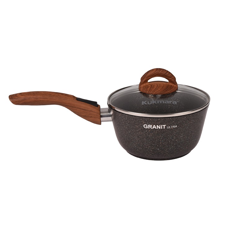 В кастрюле из литого алюминия с антипригарным покрытием ultra granit совершенно всё: современный дизайн, идеальные пропорции, безупречная подборка палитры цвета ручки и корпуса, расширенный функционал.