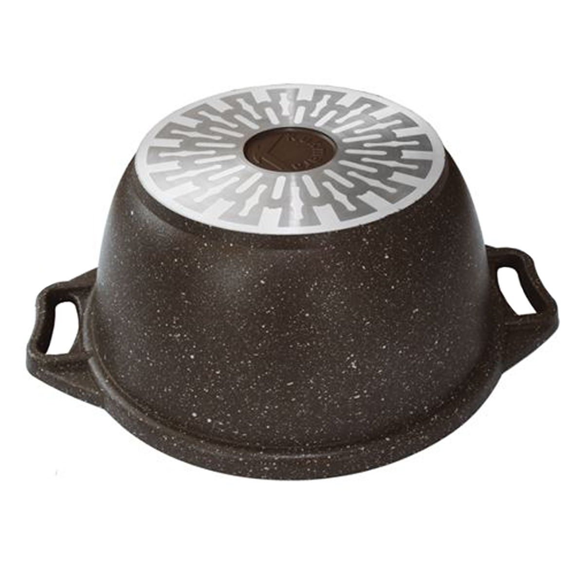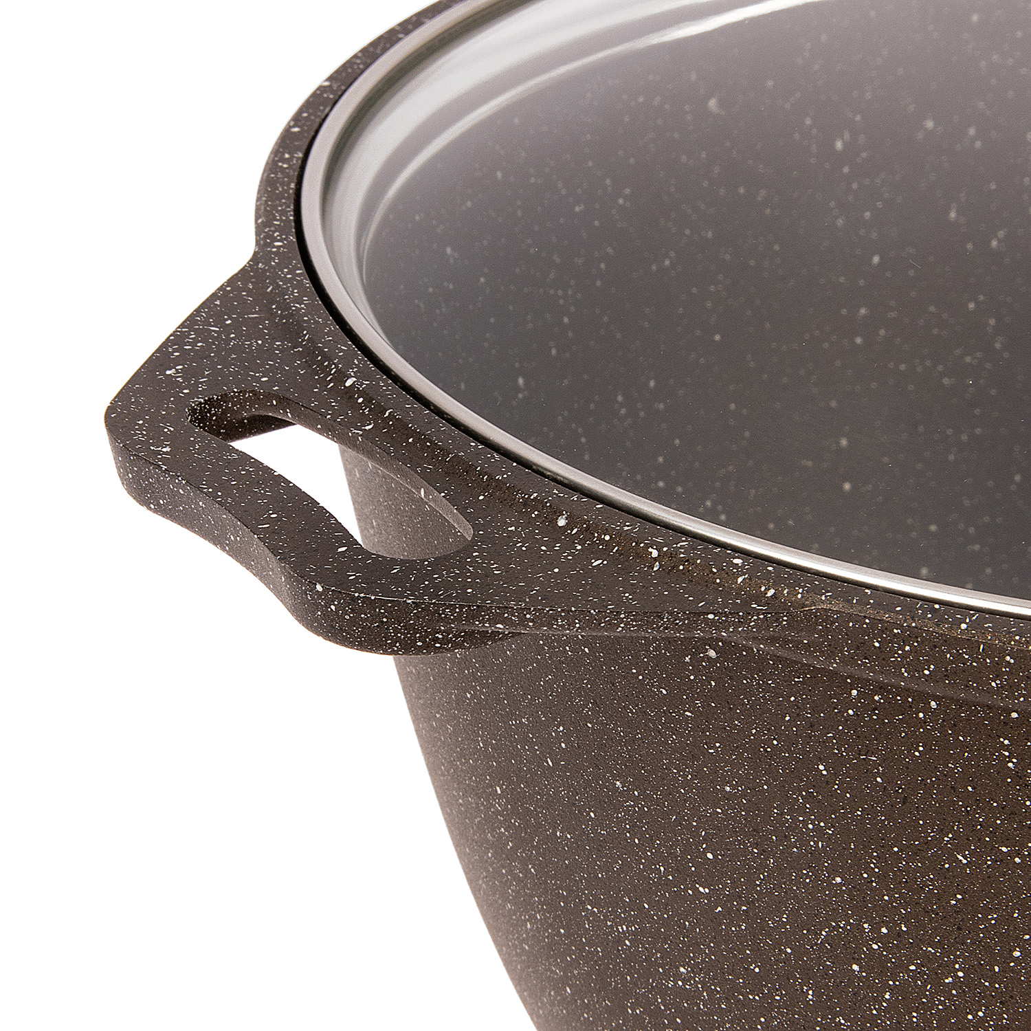 5-слойная система покрытия с частицами натурального мрамора. Линия "Мраморная" - литая толстостенная посуда с антипригарным покрытием нового поколения, усиленным сверхпрочными частицами натурального мрамора. Исключительная прочность и долговечность покрытия, равносильная по стойкости природному камню, разработана специально для интенсивного использования на каждый день. Основание- литой корпус толщиной от 4,5 до 6 мм. Метод нанесения АП покрытия -напыление. Превосходные антипригарные свойства. Возможность приготовления вкусной и здоровой пищи без добавления масла, как на раскаленных камнях. Равномерное распределение тепла. Толстостенная литая посуда удобна для жаренья, тушения и приготовления первых блюд. Эргономичные съёмные и несъёмные ручки, термостойкая крышка. Использование на всех типах плит (в т.ч. и на индукционных). Можно мыть в посудомоечной машине.