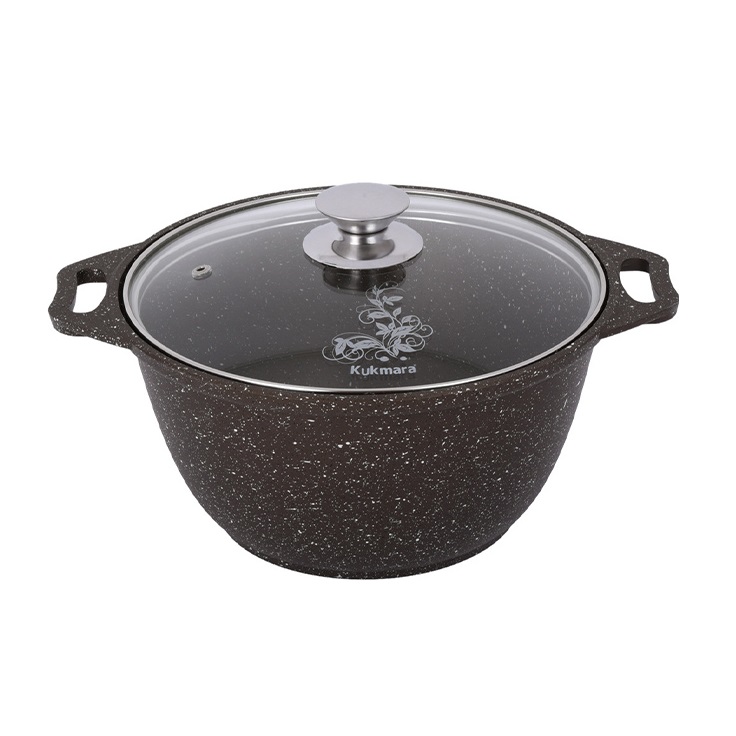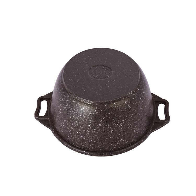 5-слойная система покрытия с частицами натурального мрамора. Линия "Мраморная" - литая толстостенная посуда с антипригарным покрытием нового поколения, усиленным сверхпрочными частицами натурального мрамора. Исключительная прочность и долговечность покрытия, равносильная по стойкости природному камню, разработана специально для интенсивного использования на каждый день. Основание- литой корпус толщиной от 4,5 до 6 мм. Метод нанесения АП покрытия -напыление.
