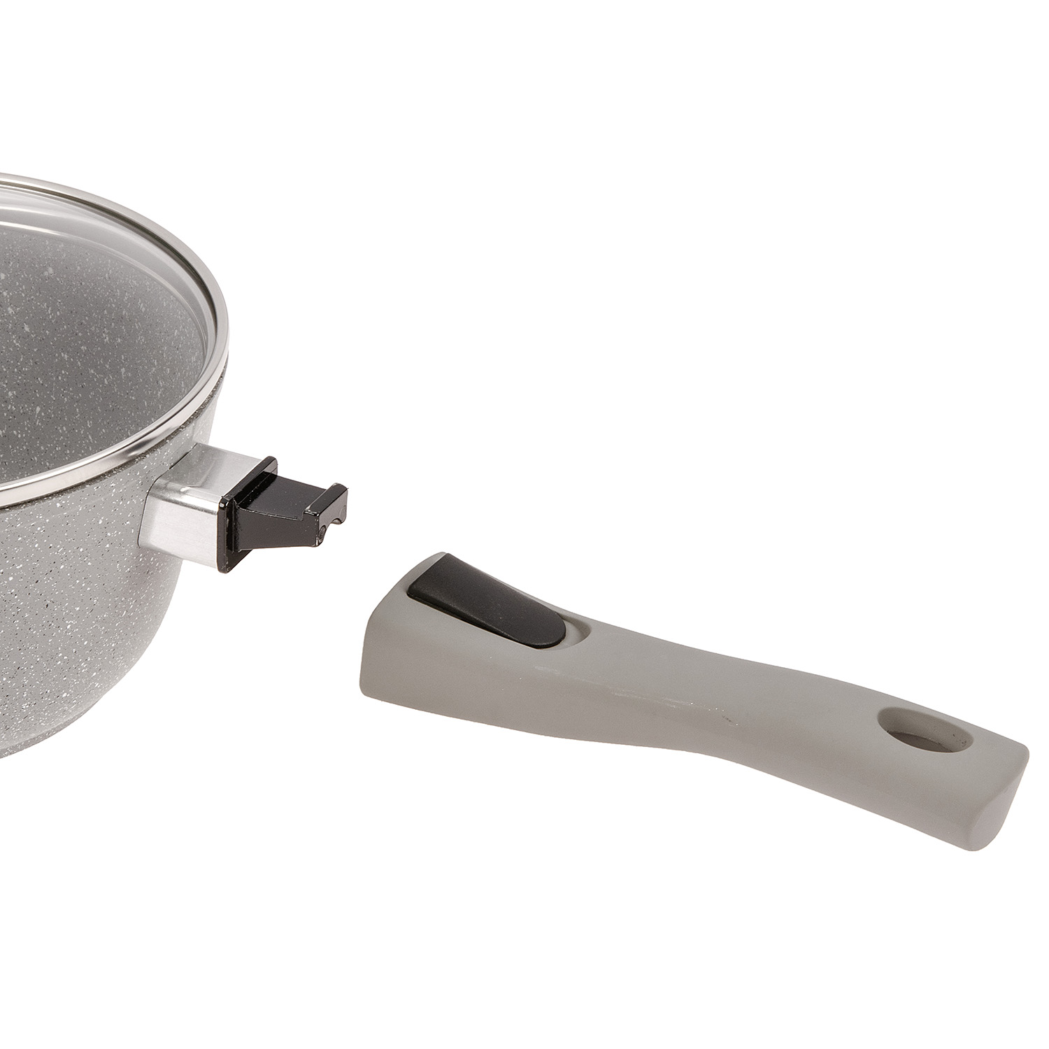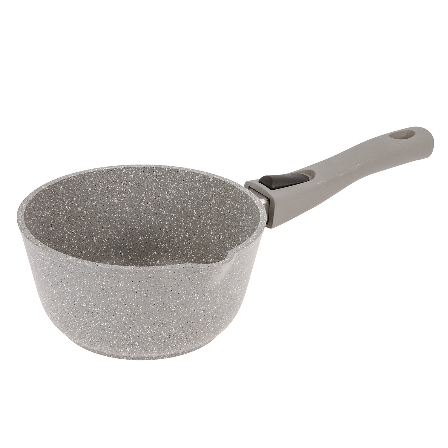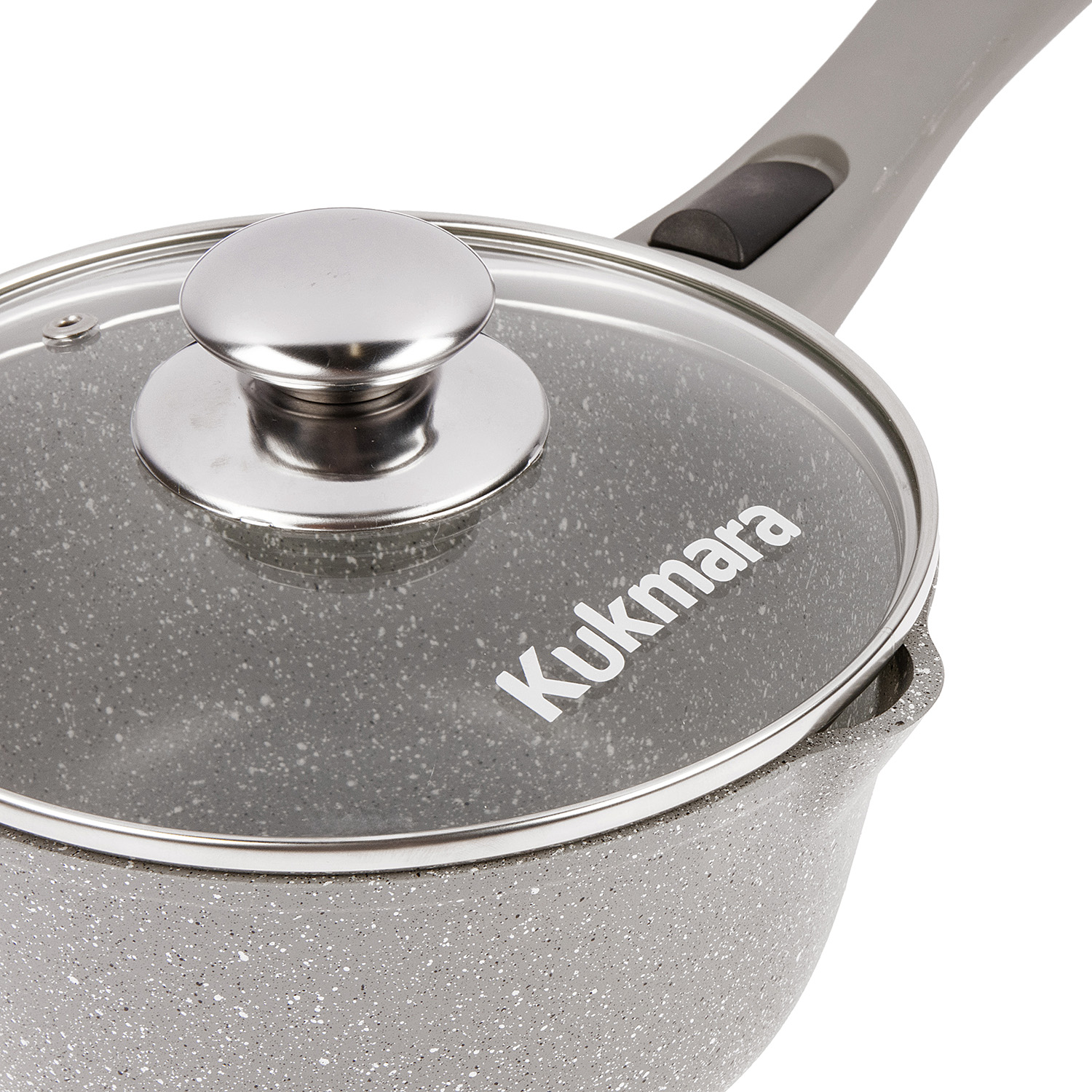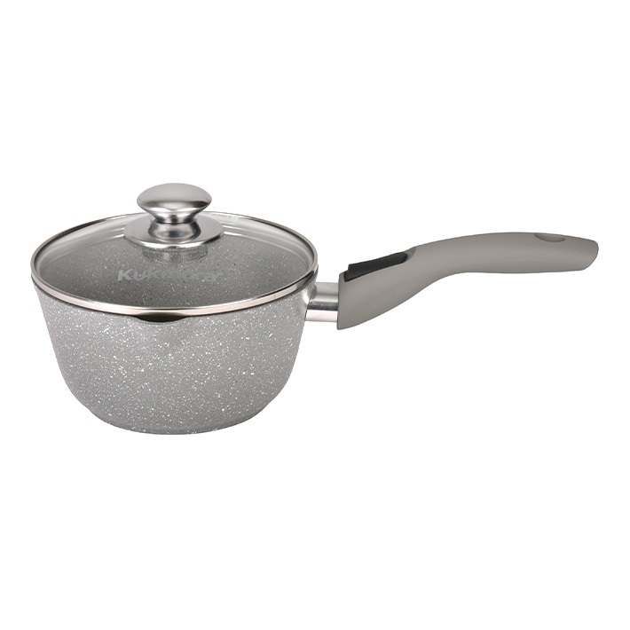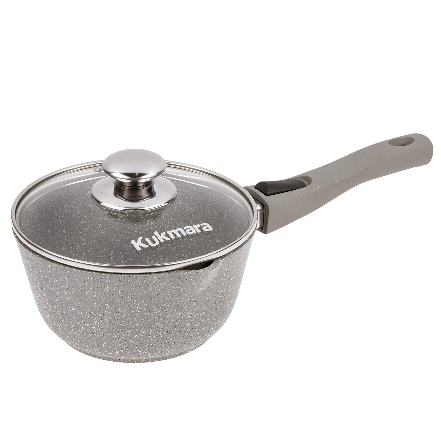 Мраморное, сверхпрочное, антипригарное покрытие с твердыми частицами натурального мрамора нового поколения на водной основе разработано специально для интенсивного использования на каждый день. Антипригарное покрытие надолго сохраняет первозданную привлекательность посуды, а превосходные антипригарные свойства будут радовать на протяжении очень долгого времени. Допускает использование только деревянных и силиконовых предметов. Покрытие абсолютно безопасно для здоровья, без PFOA. Ковш Kukmara с антипригарным покрытием имеет проточенное дно, которое обеспечивает максимальное прилегание дна посуды к плите для более быстрого и равномерного нагрева.