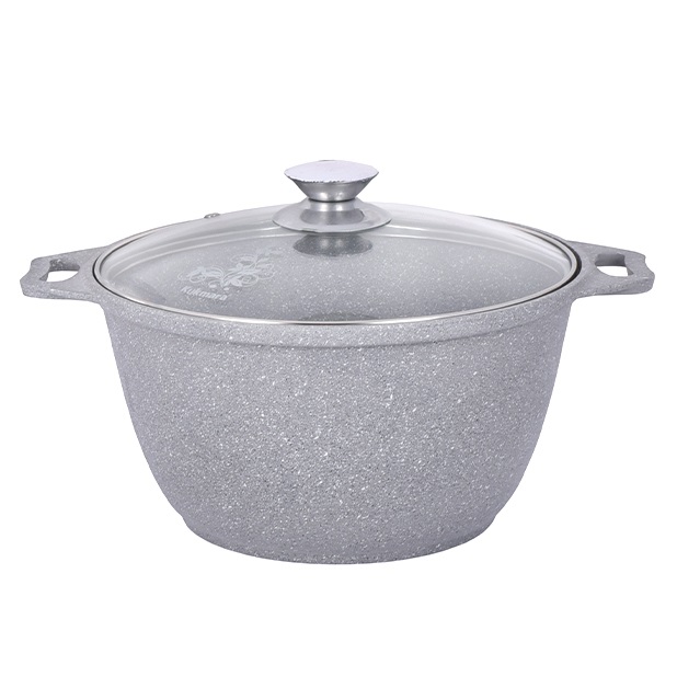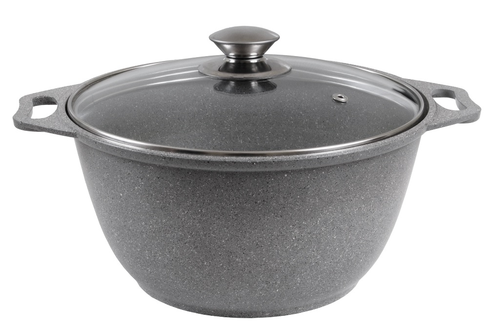 5-слойная система покрытия с частицами натурального мрамора. Линия "Мраморная" - литая толстостенная посуда с антипригарным покрытием нового поколения, усиленным сверхпрочными частицами натурального мрамора. Исключительная прочность и долговечность покрытия, равносильная по стойкости природному камню, разработана специально для интенсивного использования на каждый день. Основание- литой корпус толщиной от 4,5 до 6 мм. Метод нанесения АП покрытия -напыление.