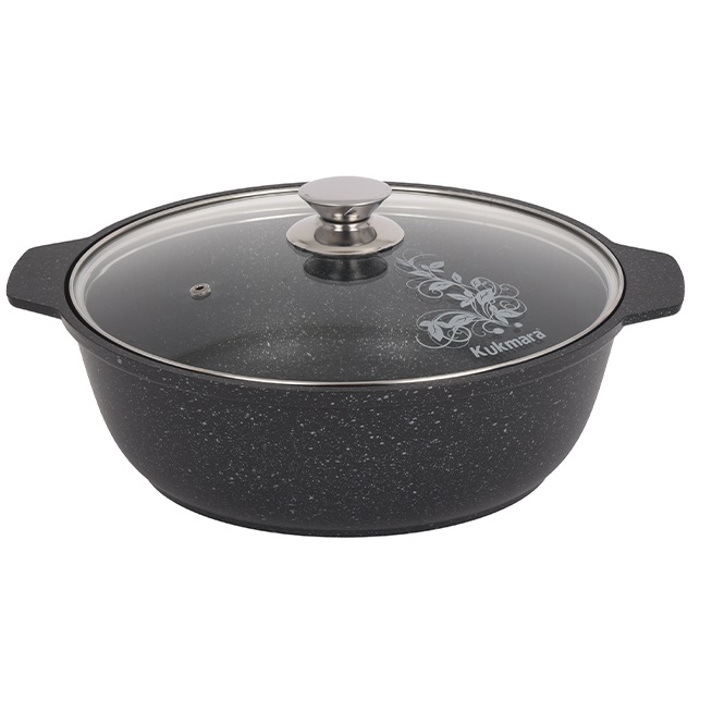 5-слойная система покрытия с частицами натурального мрамора. Линия "Мраморная" - литая толстостенная посуда с антипригарным покрытием нового поколения, усиленным сверхпрочными частицами натурального мрамора. Исключительная прочность и долговечность покрытия, равносильная по стойкости природному камню, разработана специально для интенсивного использования на каждый день. Основание- литой корпус толщиной от 4,5 до 6 мм. Метод нанесения АП покрытия -напыление.
