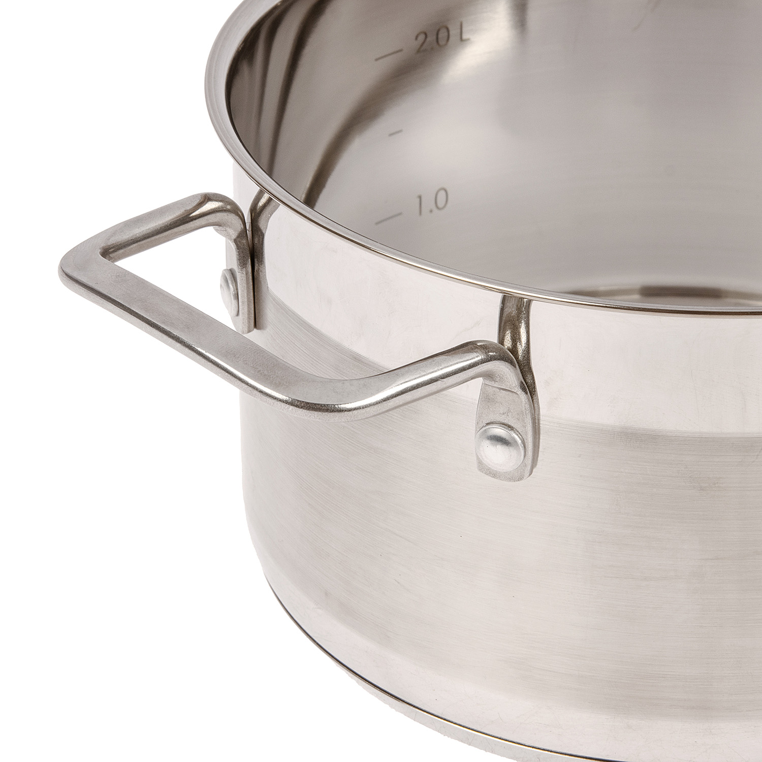 Утончённые и надёжные ручки: мягкая утончённость линий ручек подчёркивает красоту посуды, а надёжное крепление будет гарантировать безопасность и комфорт в процессе готовки. Высоко расположенные ручки с лёгкостью позволяют складываться кастрюлям одну в другую по принципу матрёшки и компактно храниться на полке.