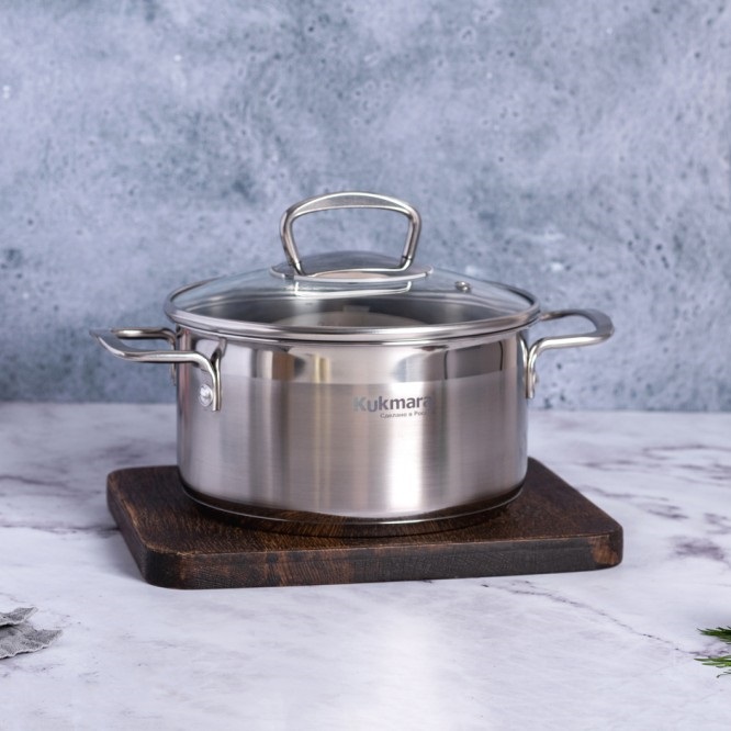 универсальная форма корпуса: классическая форма и увеличенная высота бортов позволяют готовить и хранить большие объёмы, не занимая много места ни на плите, ни в холодильнике.