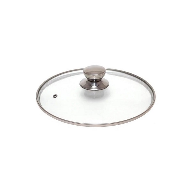 Классическая стеклянная крышка для посуды с ободом и ручкой из нержавеющей стали. Не нагревается на варочных поверхностях, выдерживает температуру до 230 градусов.