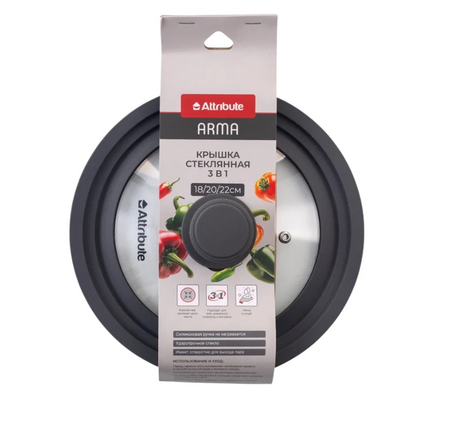Крышка универсальная стекло/силикон с ненагревающейся ручкой – это умное решение для кухни. Всего одна крышка заменит целый набор крышек трех размеров: 18-20-22 см. Изготовлена из прозрачного стекла с отверстием для выпуска пара, что позволяет контролировать процесс приготовления, не открывая крышку. Края из пищевого силикона адаптируются под размер кастрюли или сковороды, а также обеспечивают герметичный прижим, препятствуя теплопотерям.