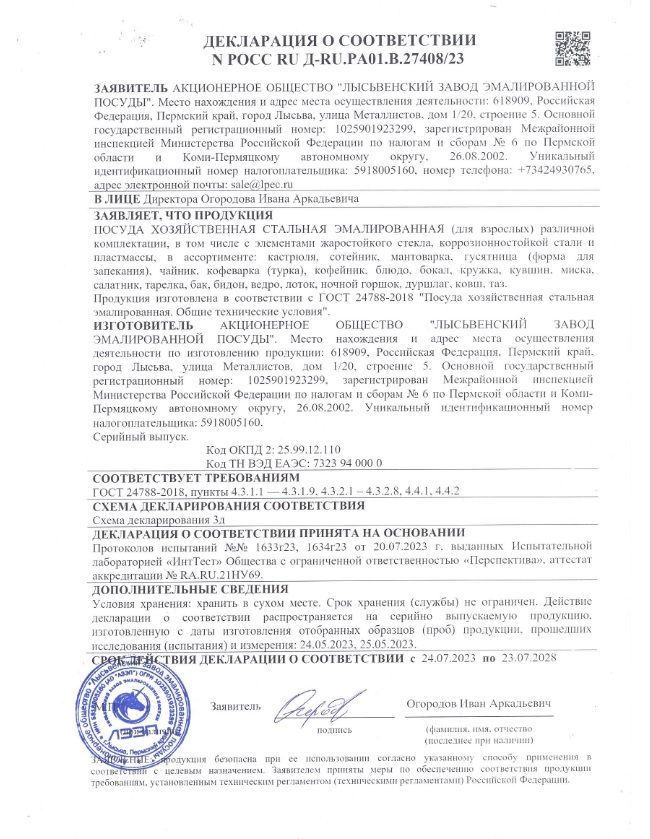 «Лысьвенские Эмали» - это традиционные изделия из эмалированной стали. Посуда отечественного производства: