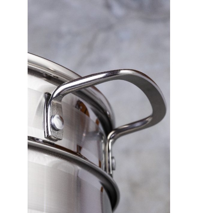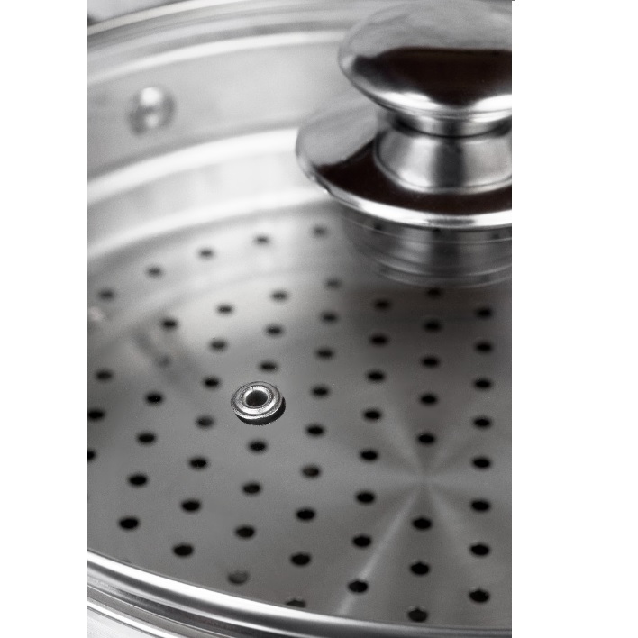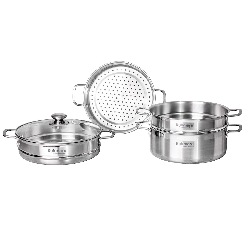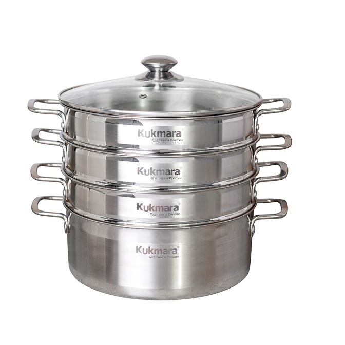 Продуманная конструкция мантоварки обеспечит одновременную готовность блюда на всех 3 ярусах. Благодаря полировке и равномерному расположению отверстий по всей поверхности секций, блюда не прилипают и получаются очень сочными. Компактные размеры в сочетании с точными расчётами при конструировании обеспечивают высокую вместительность и позволяют эффективно использовать всю поверхность без потери качества приготовленных блюд.Прочные ручки с заклёпочным креплением подчёркивают надёжность изделия. Широко расставленные, они гарантируют максимальное удобство и безопасность при использовании, а также минимальный нагрев в процессе приготовления.