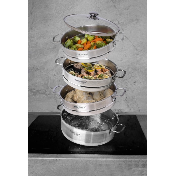 Мантоварка-пароварка от Kukmara идеально подходит для приготовления блюд азиатской кухни таких как манты, ханум, буузы. В мантоварке-пароварке можно готовить все, что готовится на пару, расположив до трёх различных блюд одновременно. Она станет отличным помощником для сторонников здорового питания. Варка на пару — один из лучших способов приготовления пищи для сохранения питательных веществ, в том числе водорастворимых витаминов, чувствительных к теплу и воде, и, что немаловажно, сохраняется вкус продуктов. Второе преимущество мантоварки-пароварки - это отсутствие необходимости использования большого количества масла при приготовлении пищи. Благодаря этому блюда, приготовленные в мантоварке-пароварке, содержат меньше калорий и жиров, что очень важно для людей, следящих за своим здоровьем.