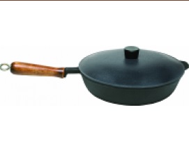 Чугун является первым металлом, из которого стали делать посуду в промышленных масштабах.Общепризнанно посуда из чугуна является лучшей для приготовления пищи. Она аккумулирует и выделяет тепло на протяжении длительного периода времени. Экологически чистая, естественная среда позволяет приготовить максимально насыщенные и вкусные блюда. Чугун считается материалом безопасным по отношению к организму человека. Чугунная посуда долговечна, не боится перегрева и механических повреждений, не подвержена деформации.Все знают, что если оставить влажной, то непокрытая чугунная посуда ржавеет, поэтому нужно соблюдать несложные правила, достаточно хорошо просушить изделие и не допускать хранение во влажной среде.С годами в процессе эксплуатации посуда из чугуна приобретает естественное антипригарное покрытие, которое, в отличие от «конкурентов» (посуды с искусственным антипригарным покрытием), со временем не теряет своих свойств, а наоборот, становится только лучше. Структура чугуна пористая, и жир при готовке забивает поры, образуя на дне и на стенках посуды тонкую пленку, которая и не позволяет продуктам пригорать.На сегодняшний день ассортимент чугунной посуды весьма широк. Чугунная посуда подвергается термической обработке. В результате на посуде могут появиться пятна. Это нормальное явление и не влияет на качество посуды.