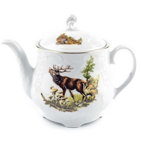 Отличительной особенностью является вечная элегантность, выраженная в плавных линиях и орнаментальных украшениях. На блюдце выполнен декор Охота.