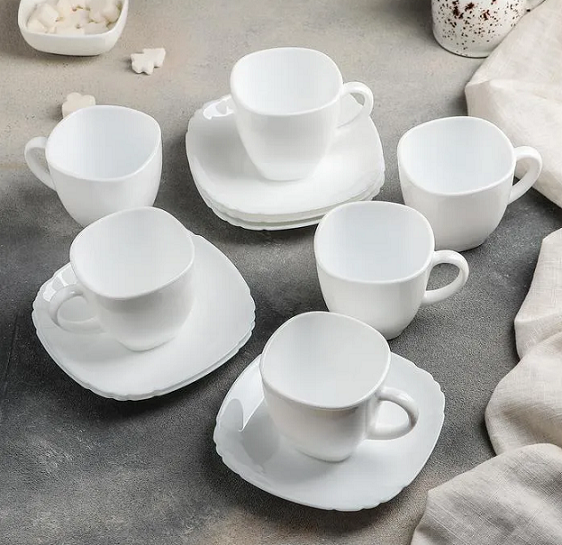 Чайный набор Basic состоит из шести чашек и шести блюдец. Предметы набора изготовлены из высококачественного ударопрочного стекла, которые обладают высокой степенью прочности, устойчивостью к царапинам и резким перепадам температур.