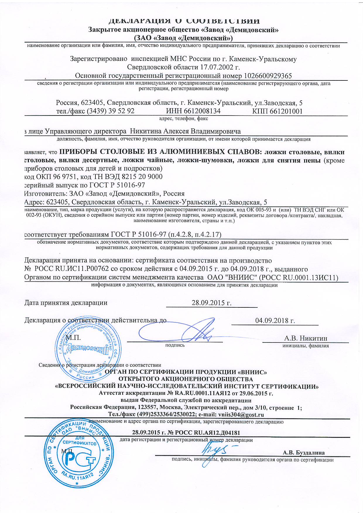 Ложка столовая алюминиевая МТ-021 б/инд.маркир. "Завод Демидовский" *25/400