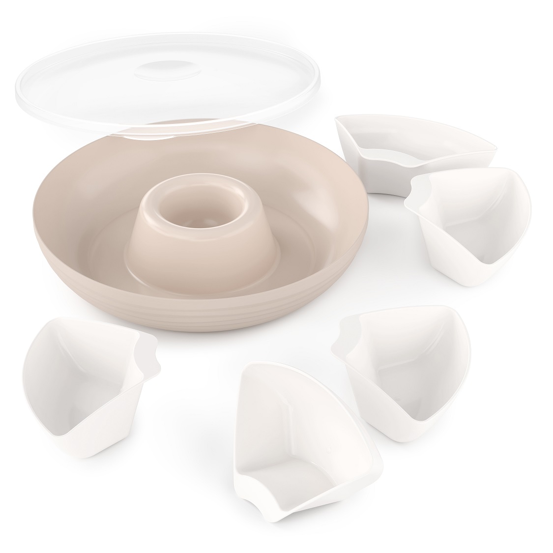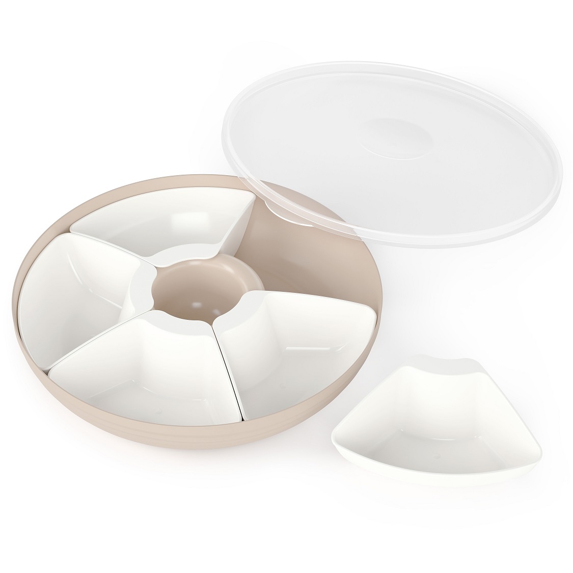 Менажница из коллекции “Оазис” представляет собой блюдо, имеющее пять маленьких салатников и соусницу. Предназначена для сервировки стола, подачи разнообразных закусок: от сыра до сладостей. Количество салатников регулируется в зависимости от блюда. Менажницу можно мыть в ПММ и использовать в СВЧ. Герметичная крышка позволяет дольше сохранять свежесть продуктов. Также менажницу можно использовать в качестве контейнера для транспортировки.